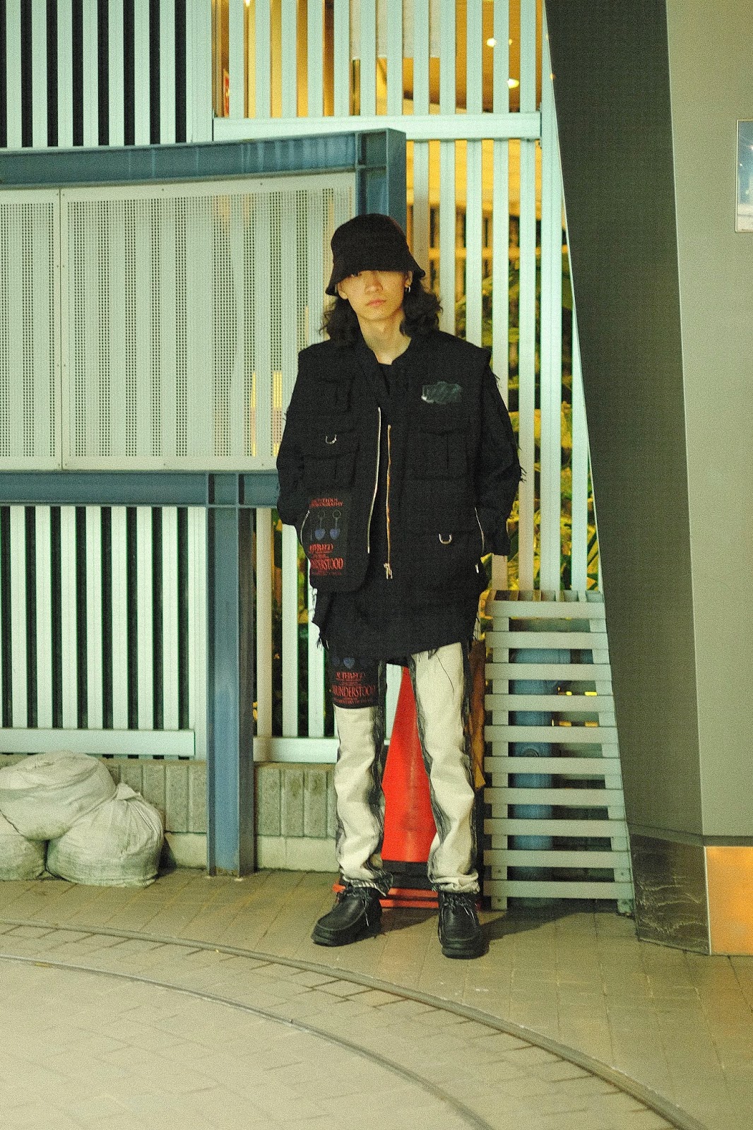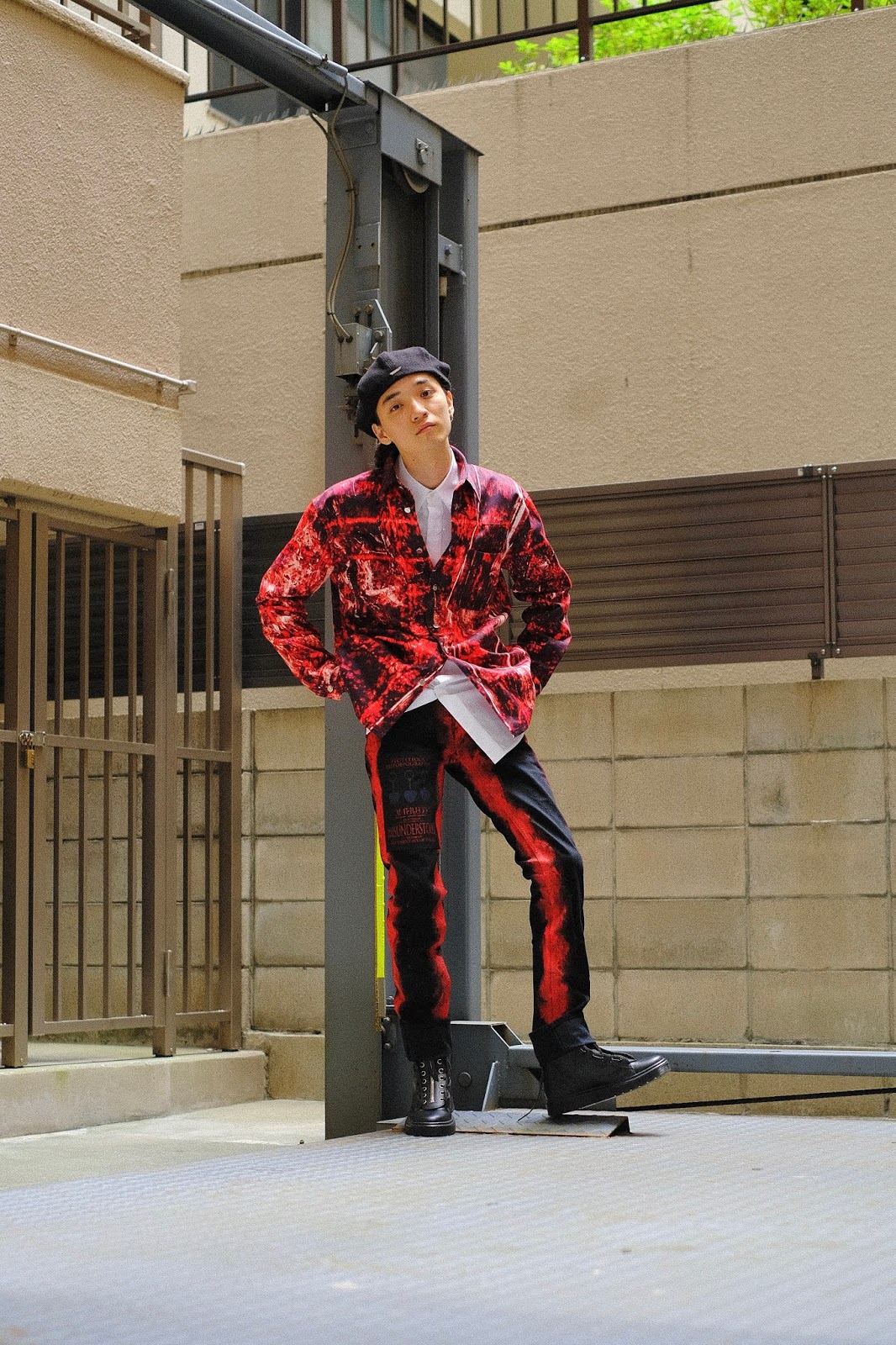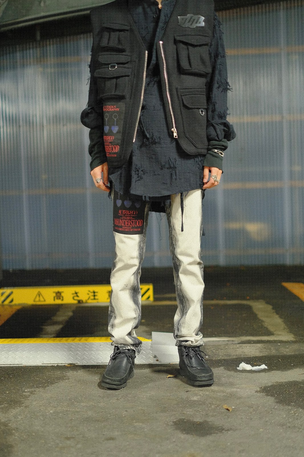 白のワークパンツをキャンバスに見立て、