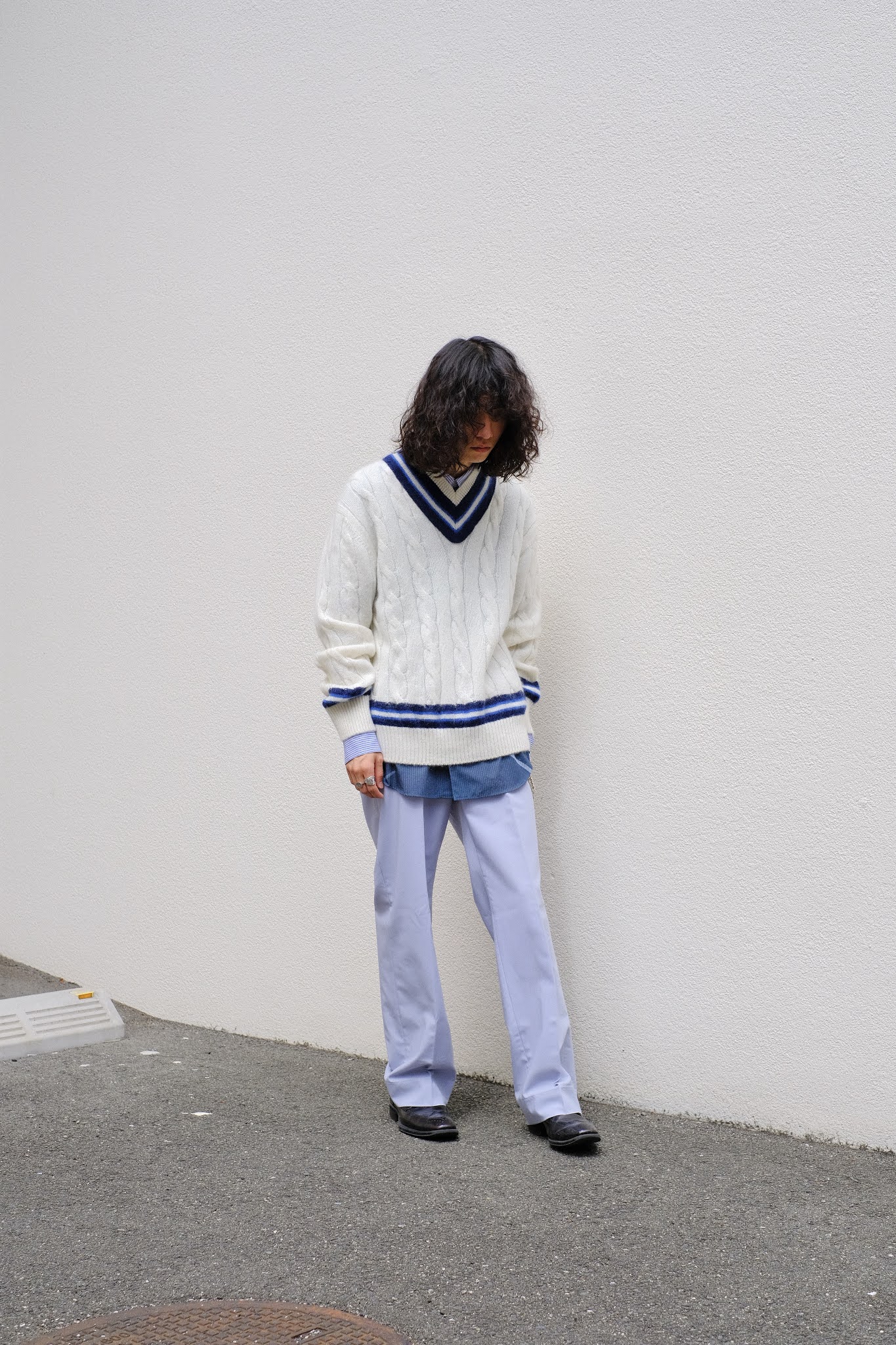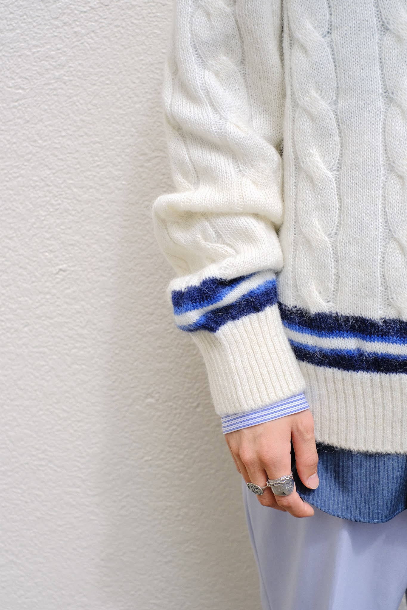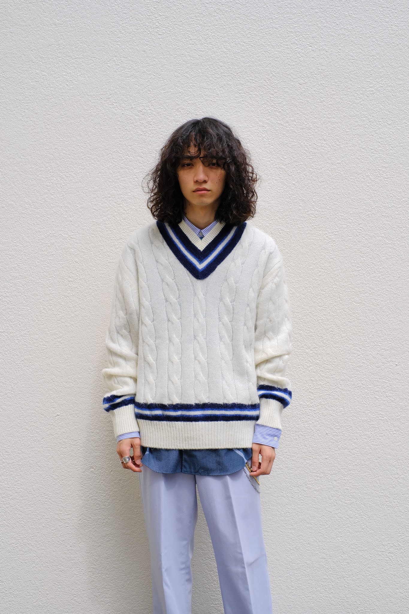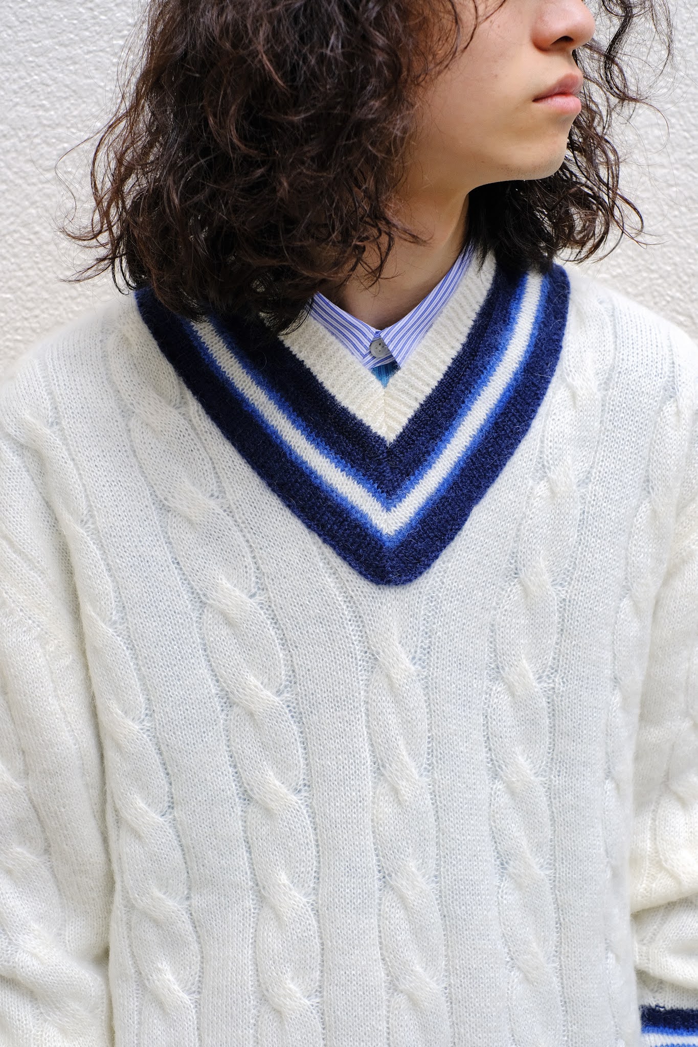 5G BIG CABLE TILDEN V-NECK KNIT(OFF WHITE)