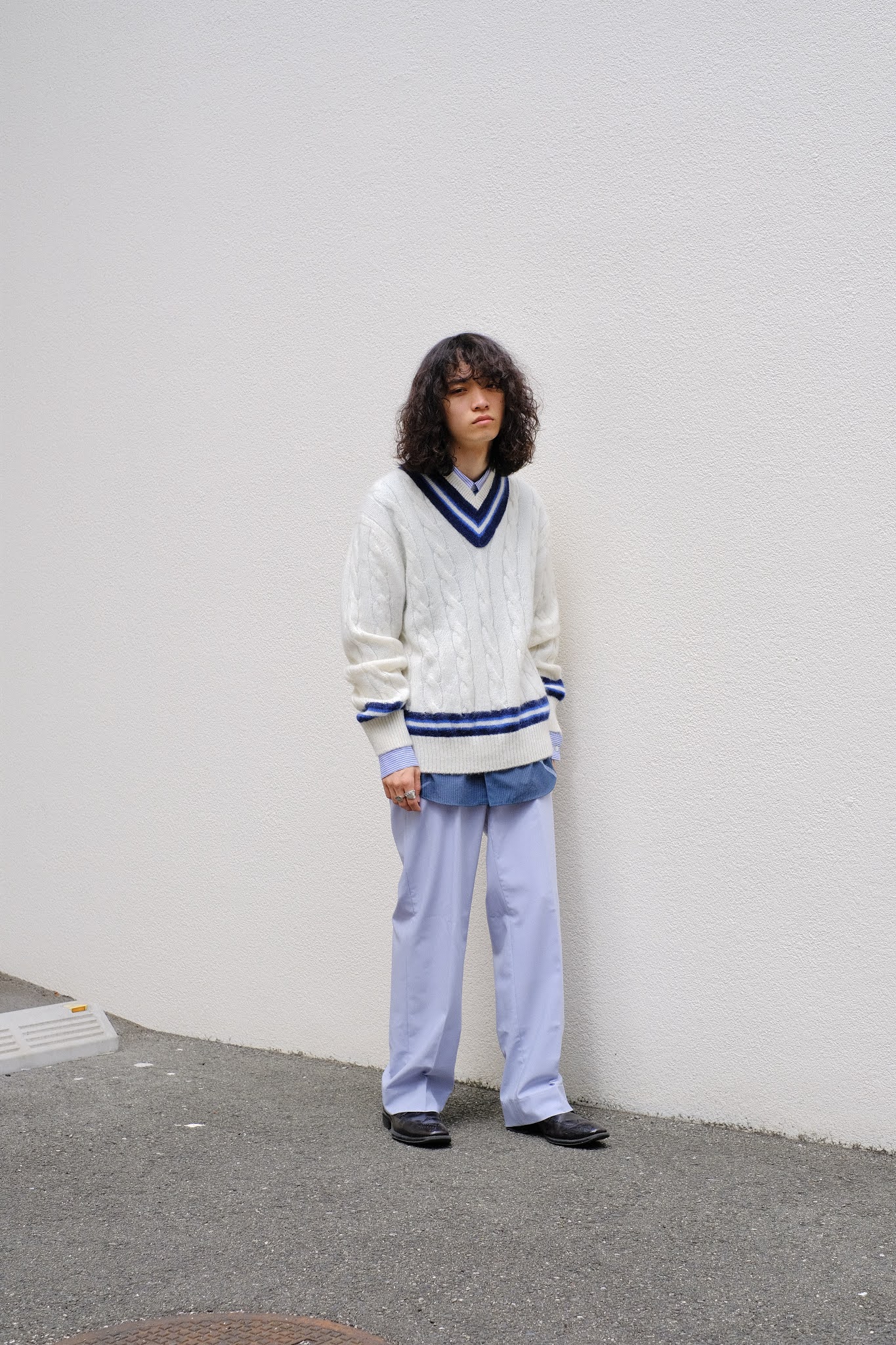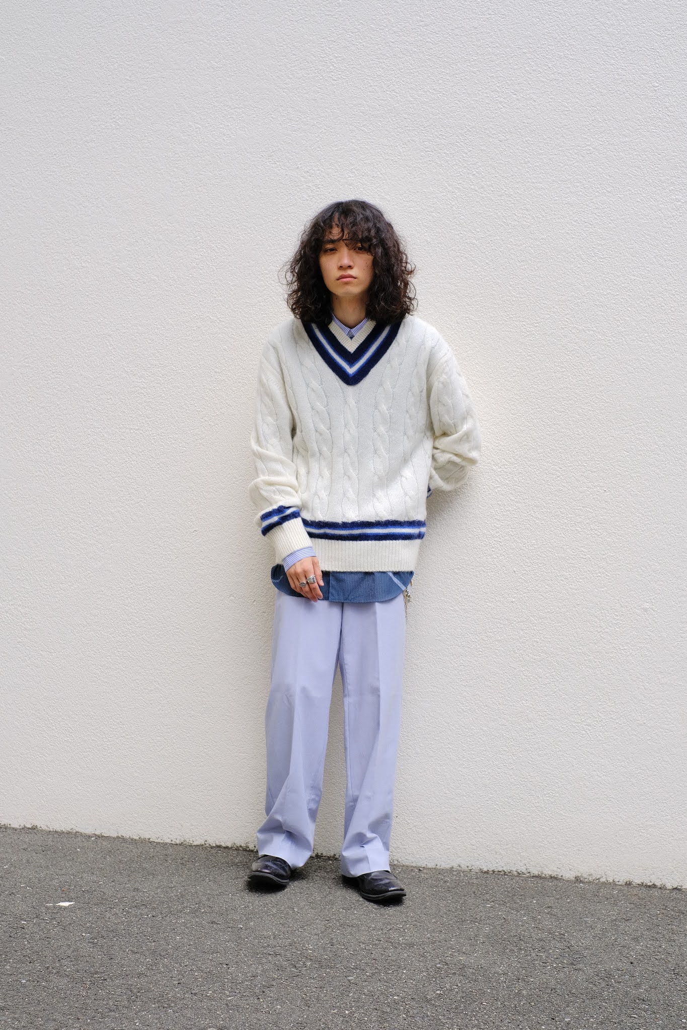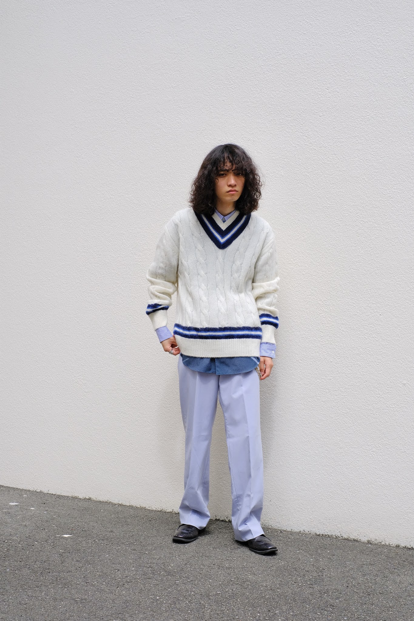 5G BIG CABLE TILDEN V-NECK KNIT(OFF WHITE)