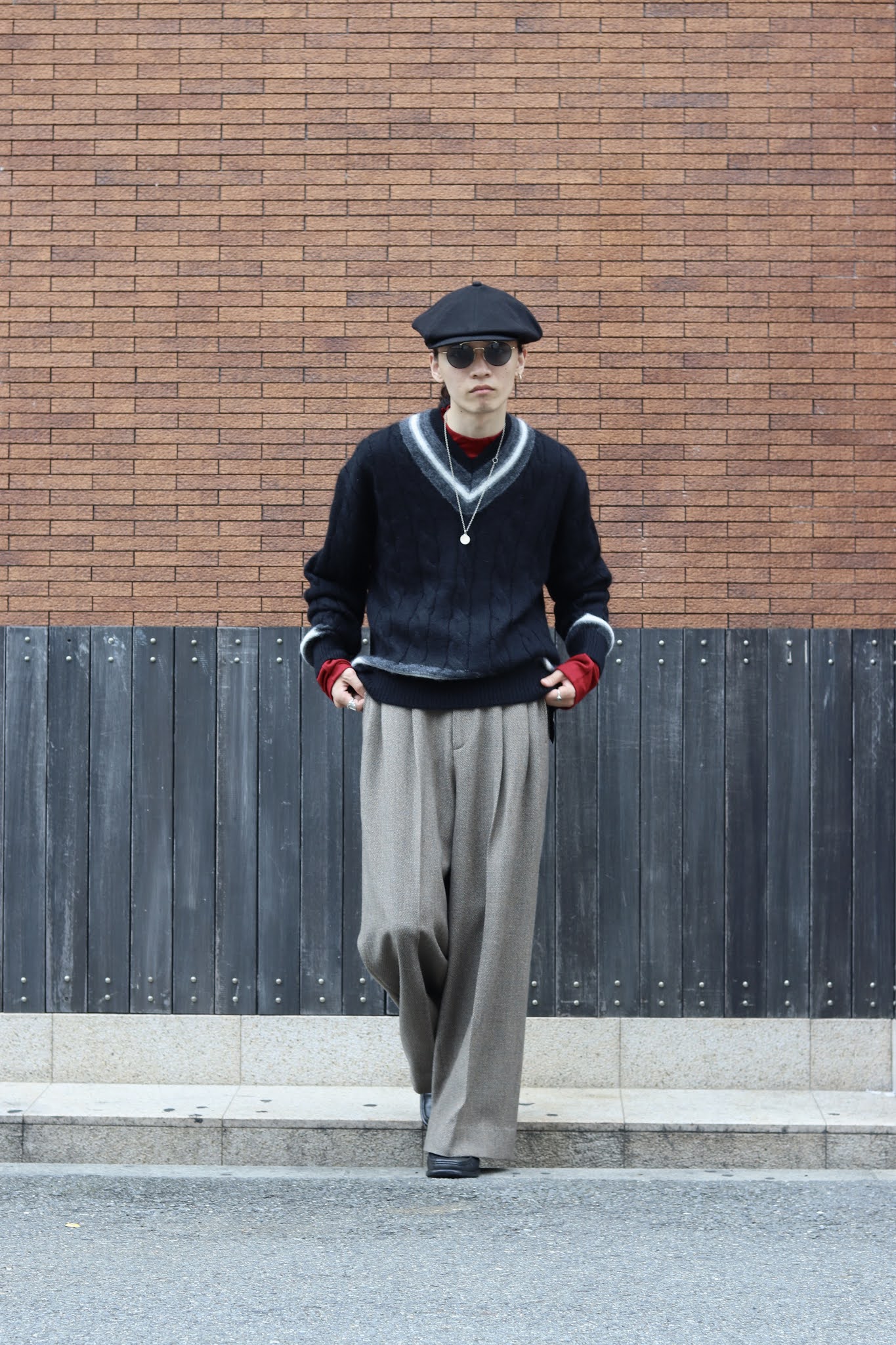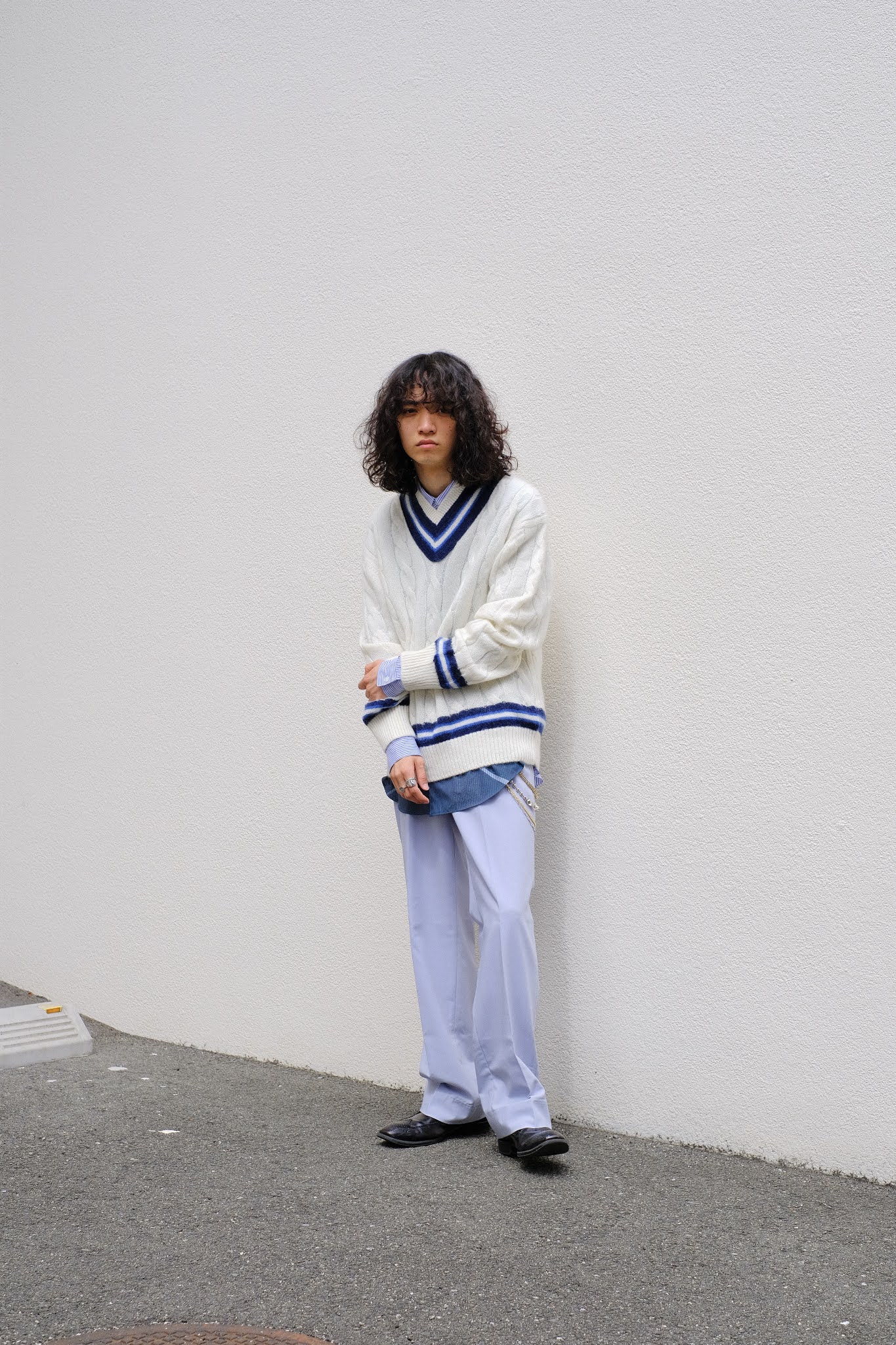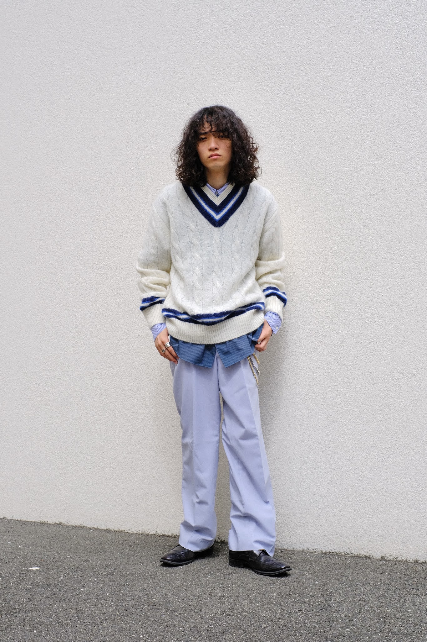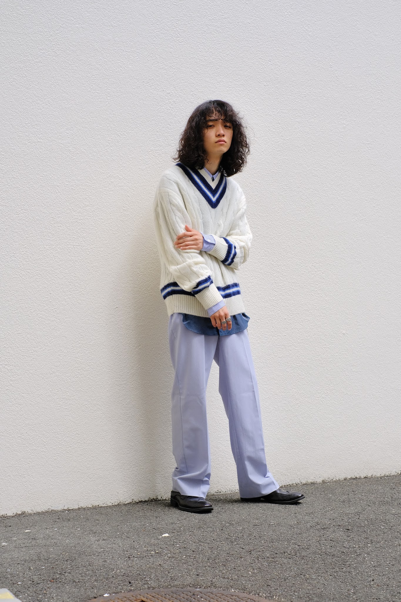 5G BIG CABLE TILDEN V-NECK KNIT(OFF WHITE)