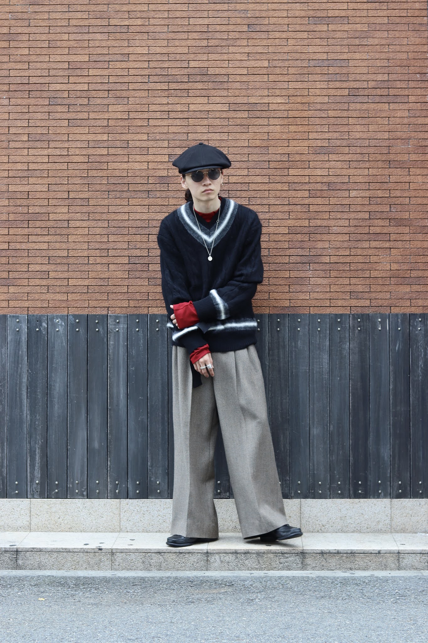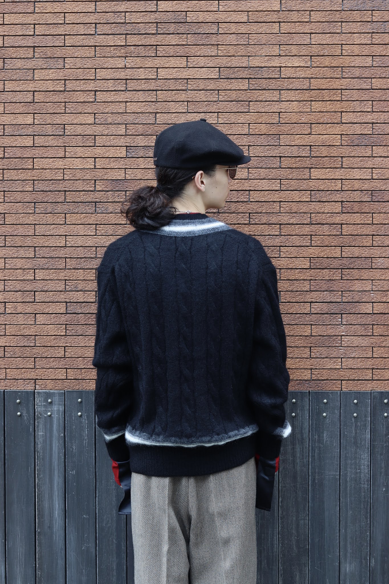 5G BIG CABLE TILDEN V-NECK KNIT(BLACK)