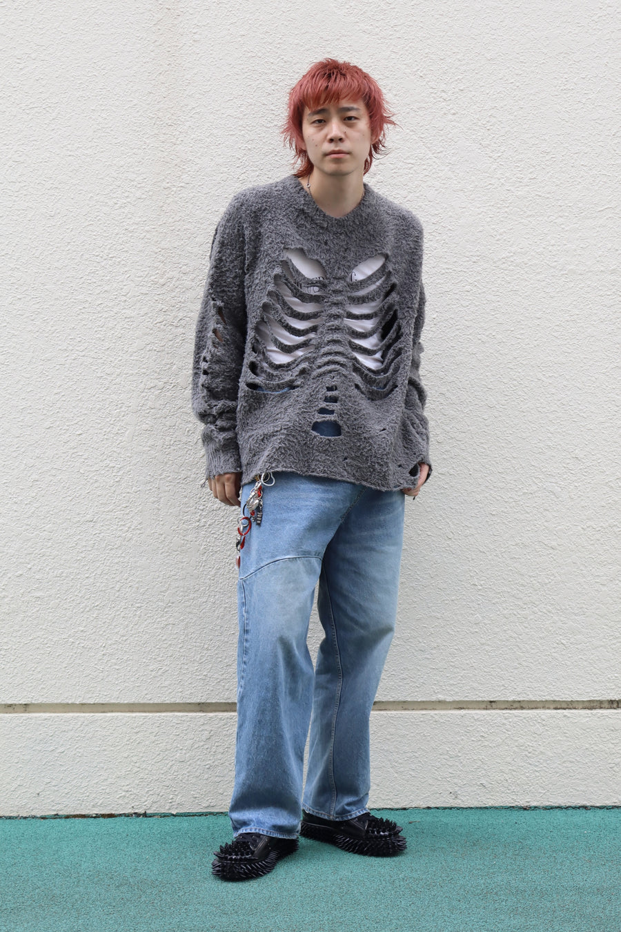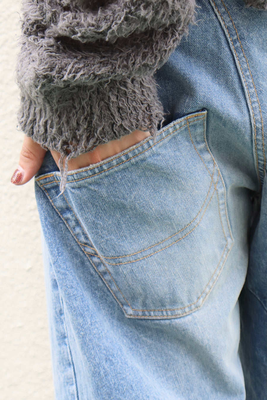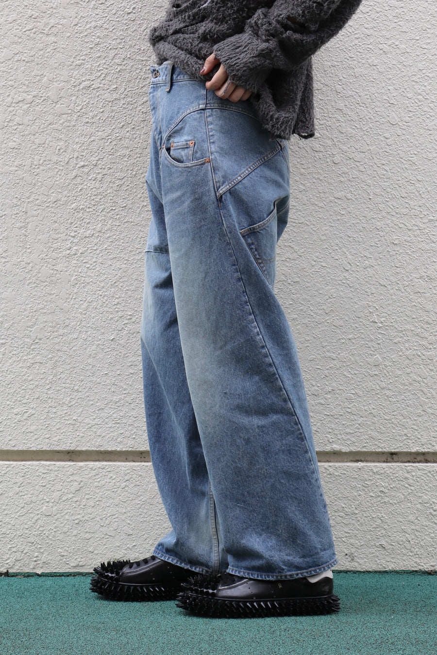 パンツの形は保ちながらも歪み、いびつな部分も見受けられる個性的な一着。