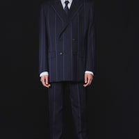 4つ釦2つ掛けのダブルジャケット。今までとは少し違う釦の配置が絶妙な違和感を与えてくれます。
