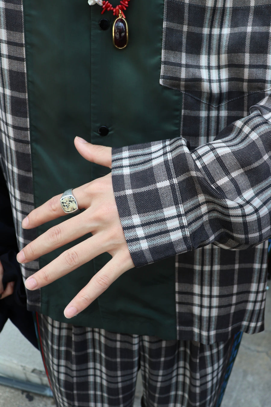 チェックとメアンドロス柄の混ざったデザインが印象的です。