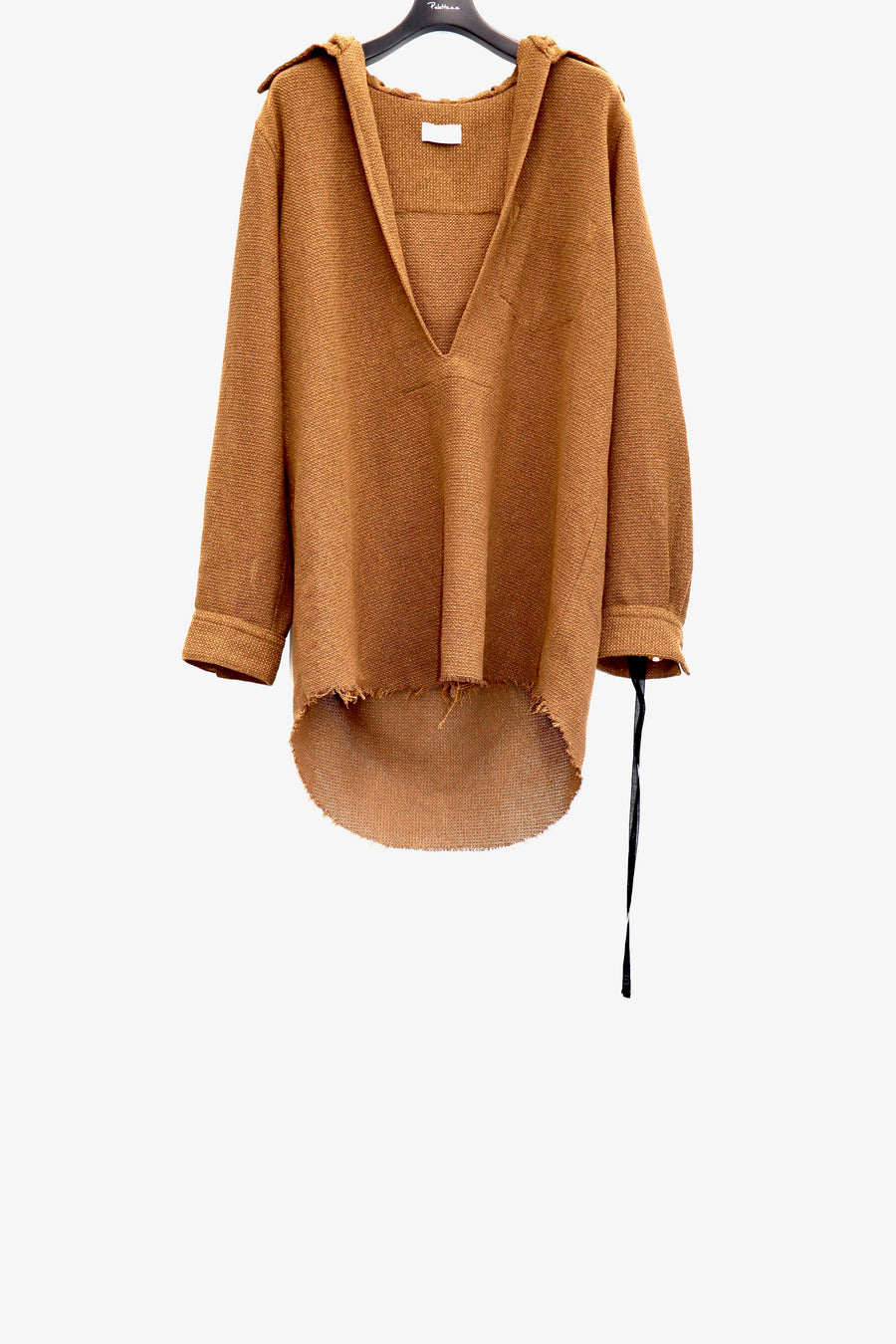 A hooded pullover shirt with a relaxed silhouette and a loose chest.