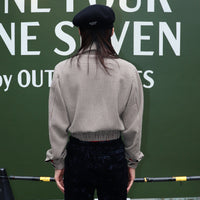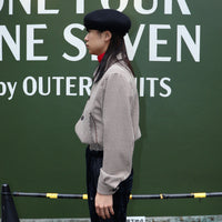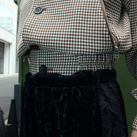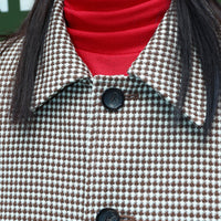 A short blouson with a houndstooth pattern.