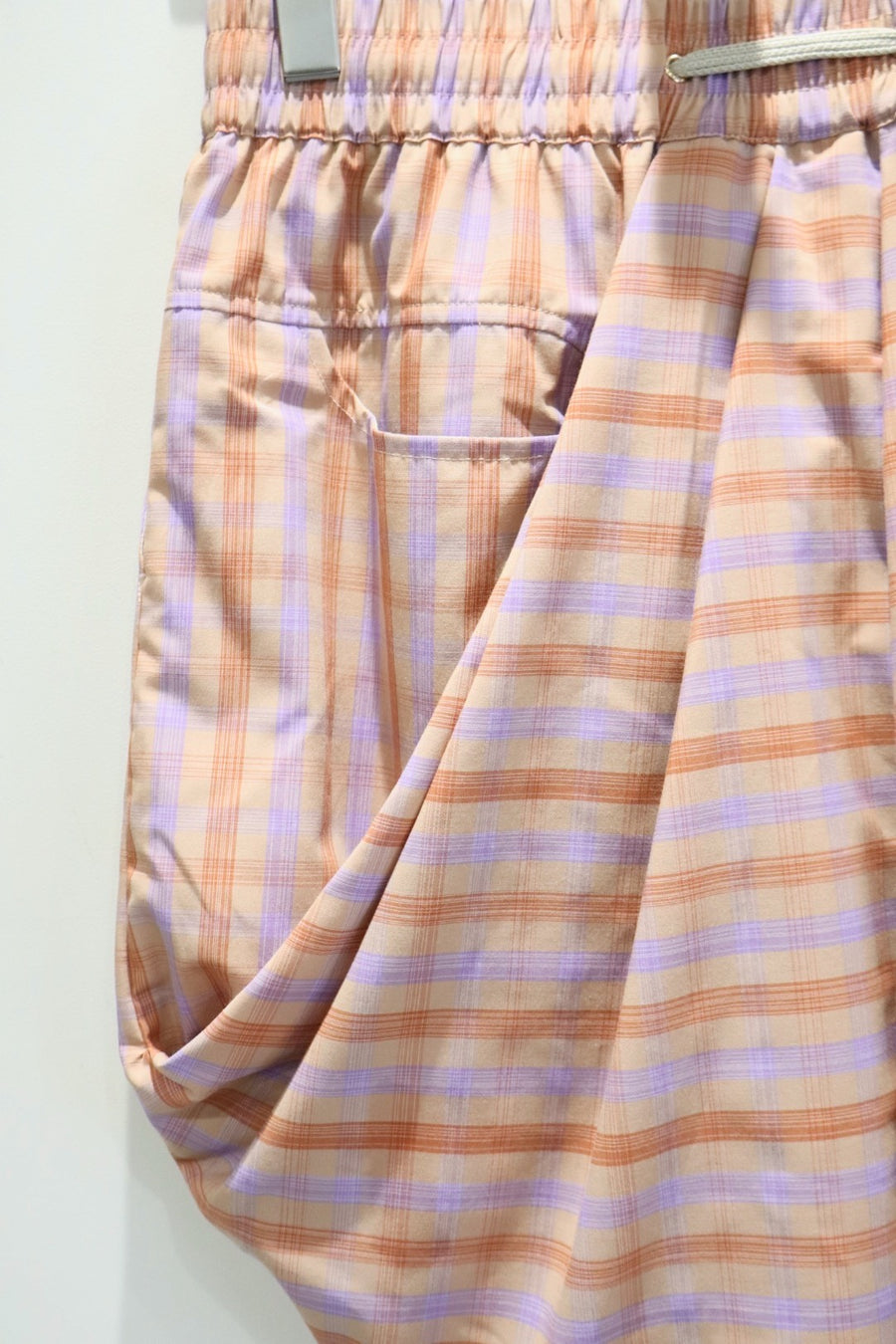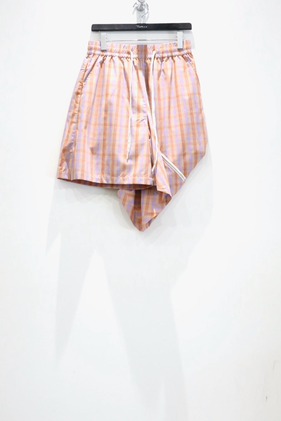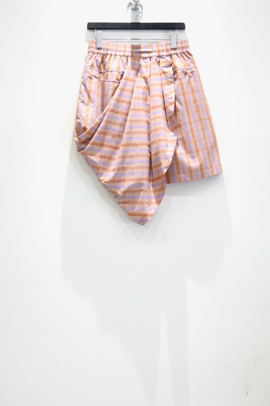 The opening is asymmetrical, and the plaid pattern is an accent.