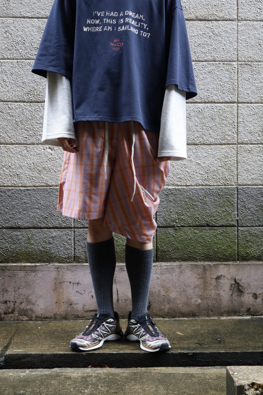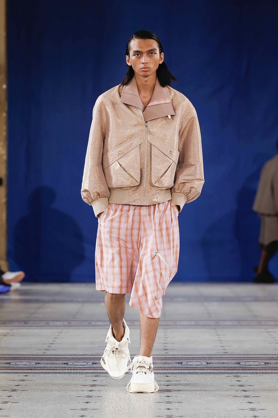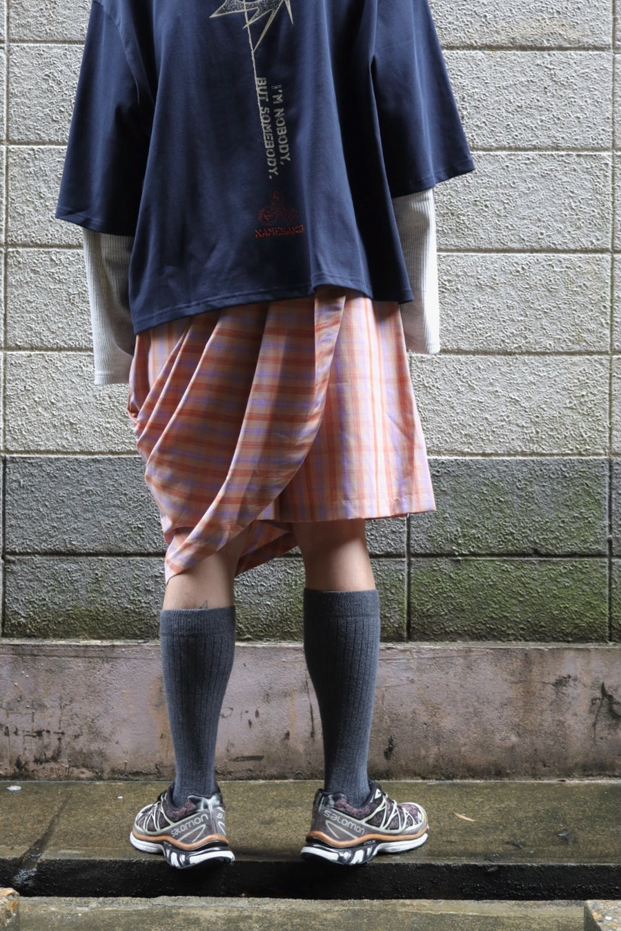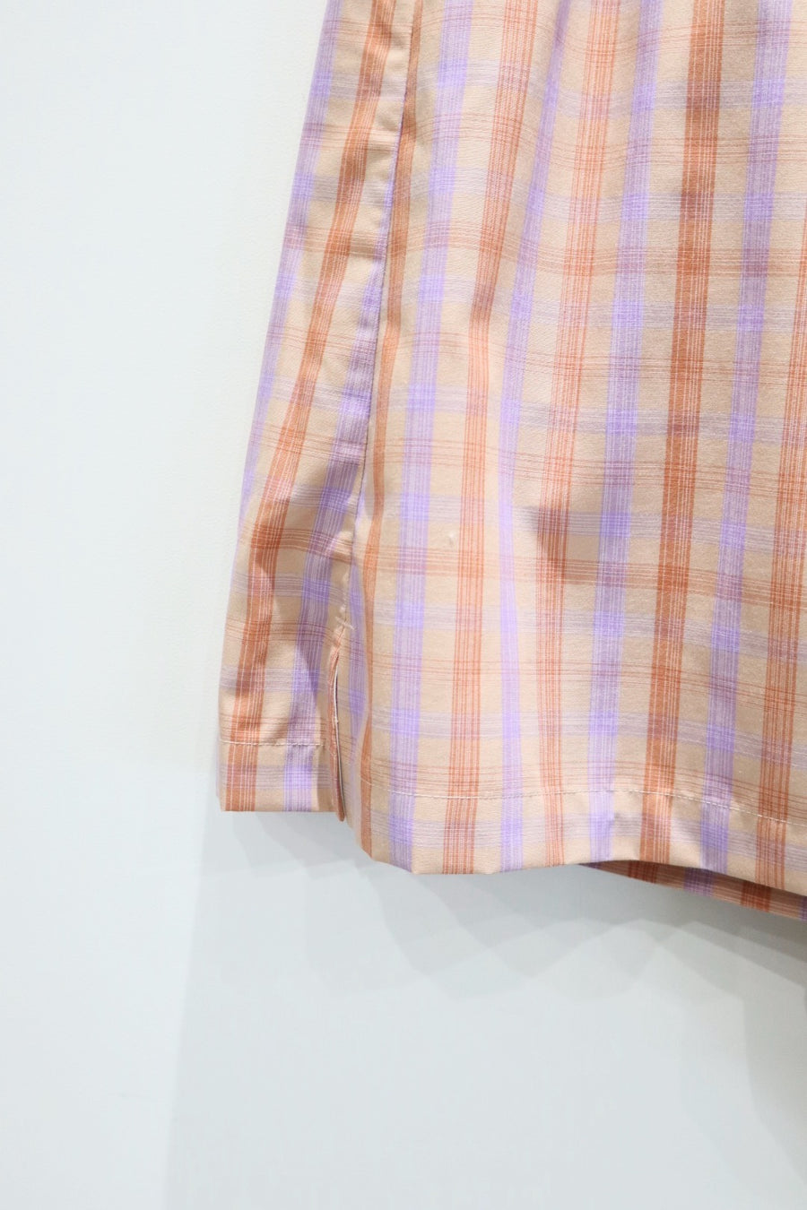 The opening is asymmetrical, and the plaid pattern is an accent.