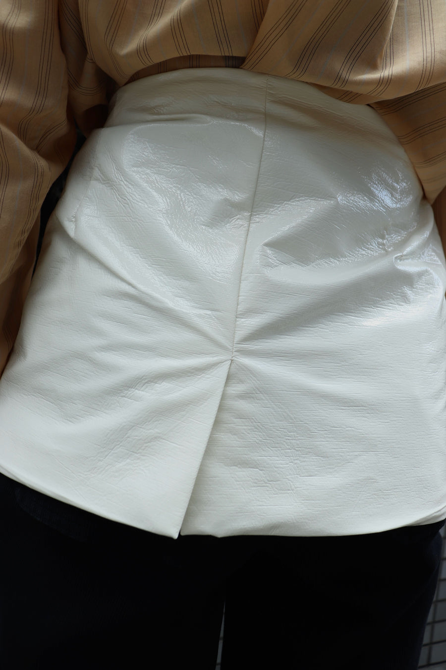 Une jupe enveloppante qui ressemble à une veste sur mesure.