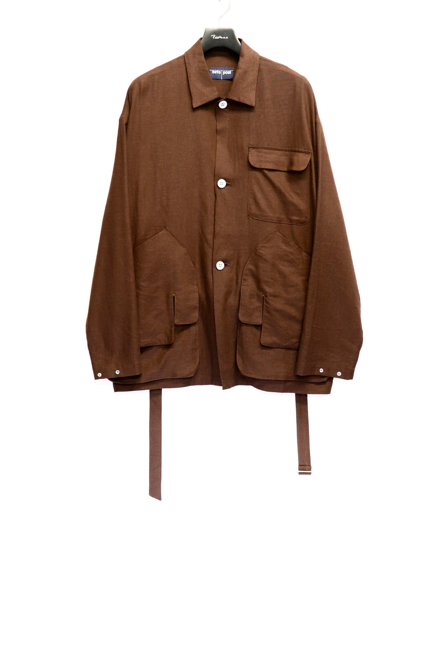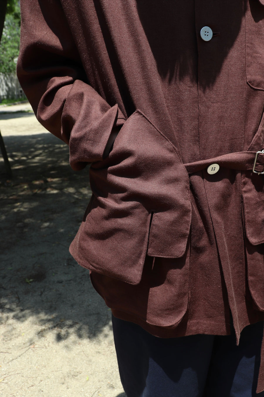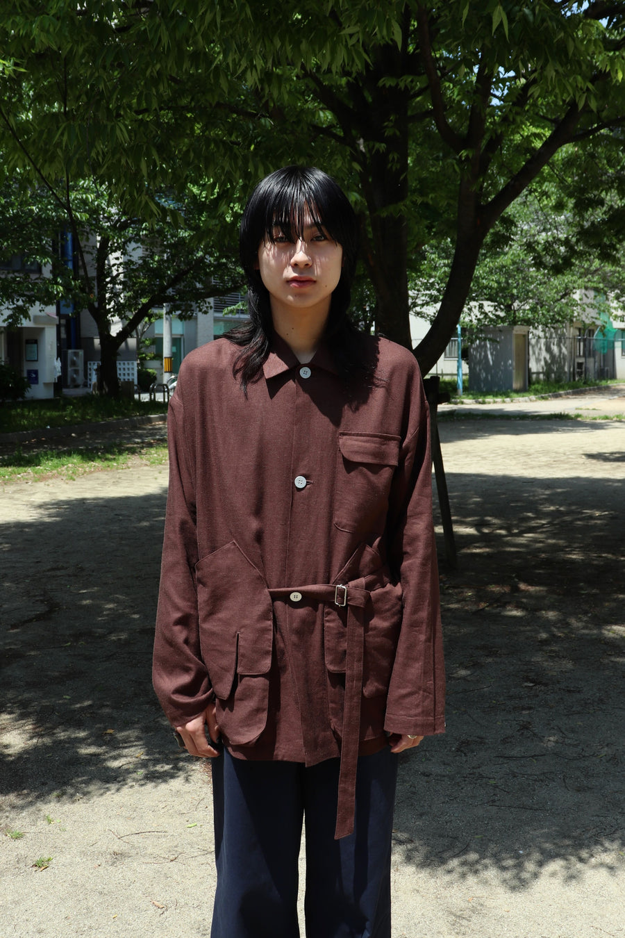 이 작품은 가공 된 알루미늄 버튼 및 허리 벨트와 같은 세부 사항에 중점을 둡니다.