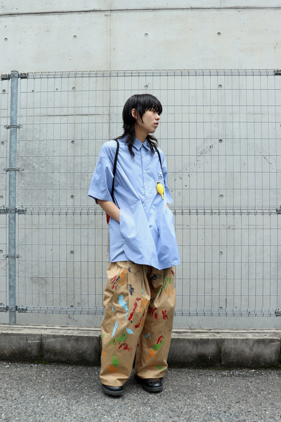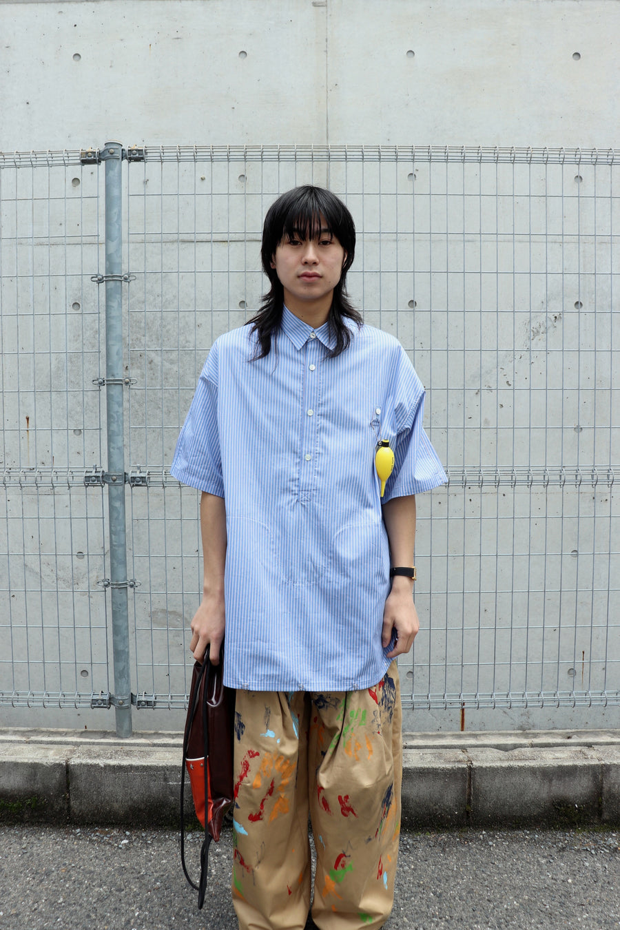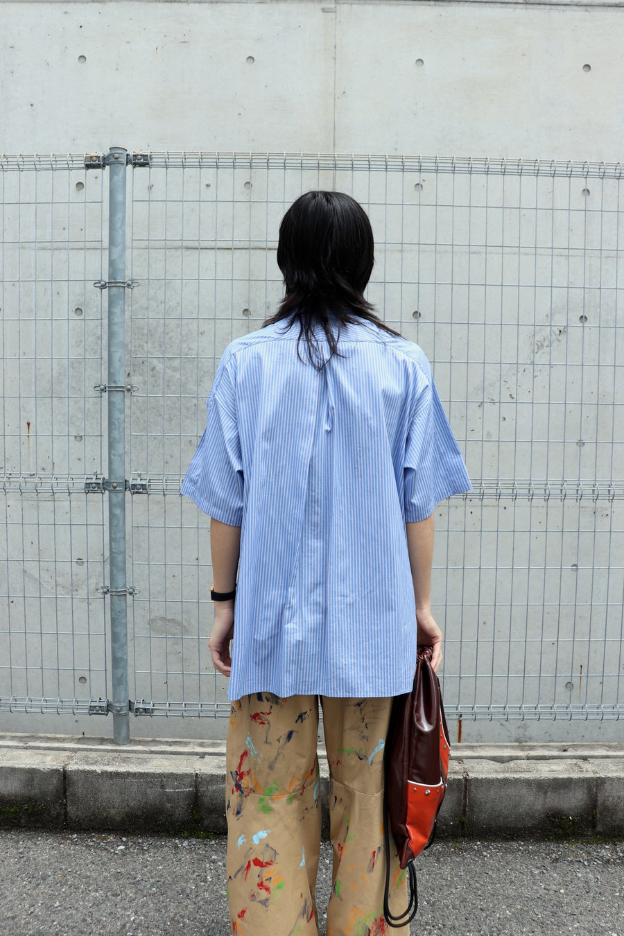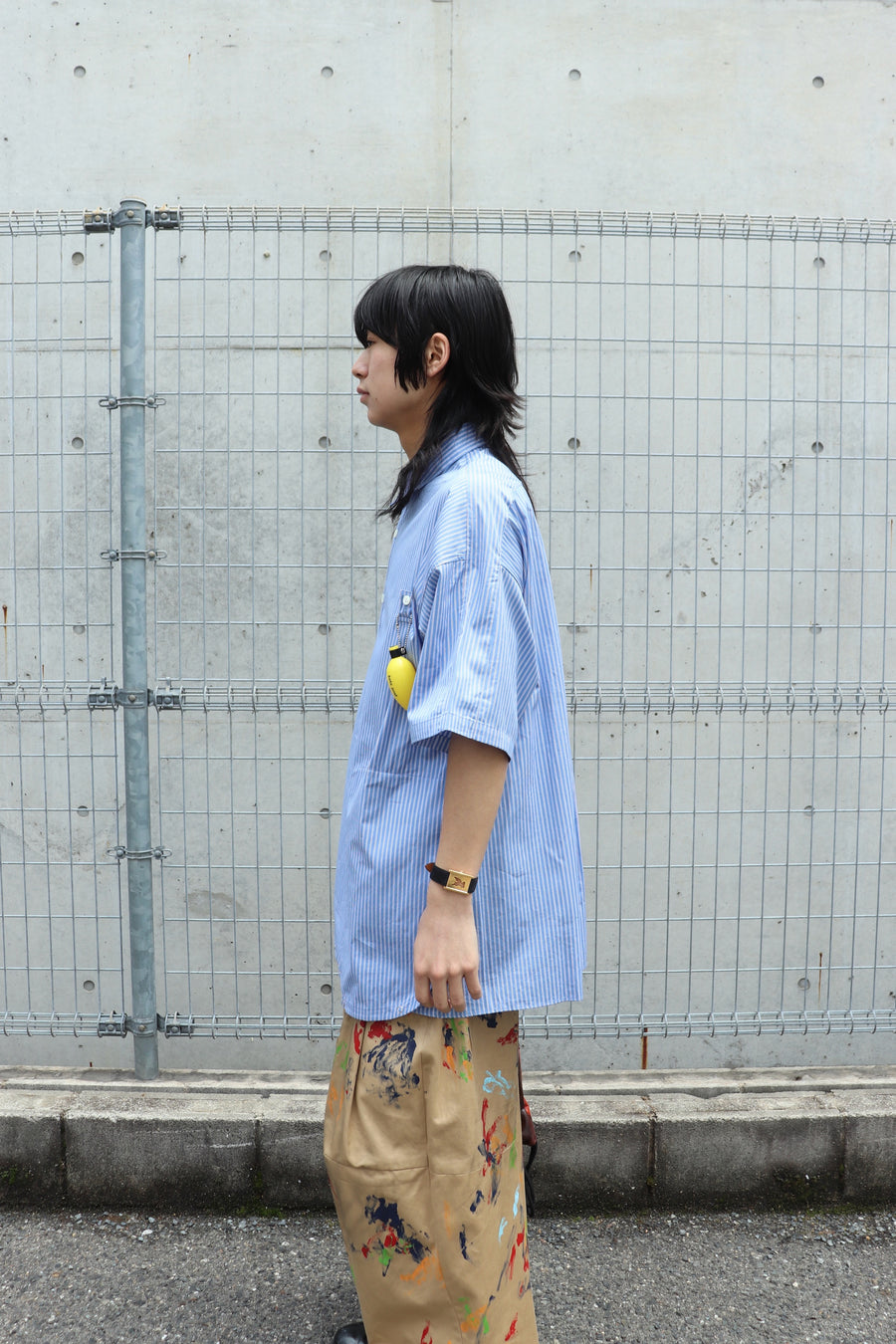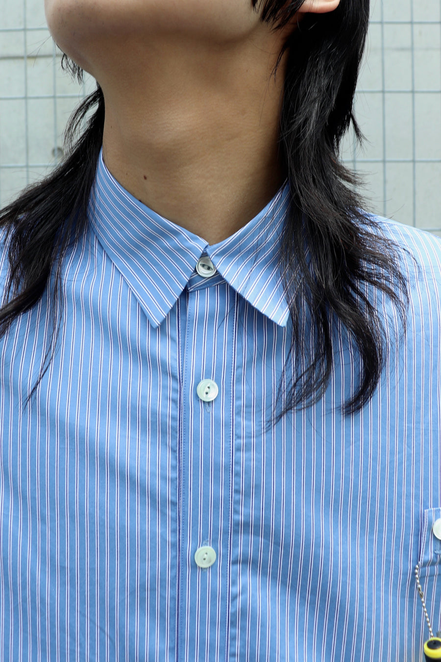 짧은팔 줄무늬 셔츠.