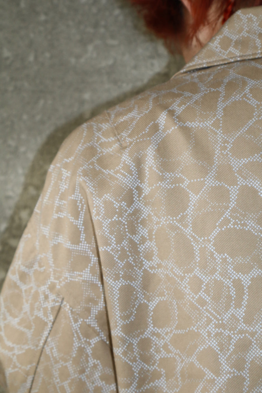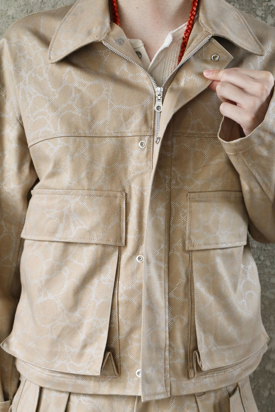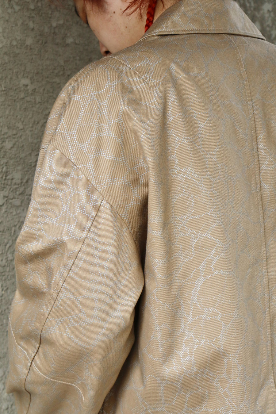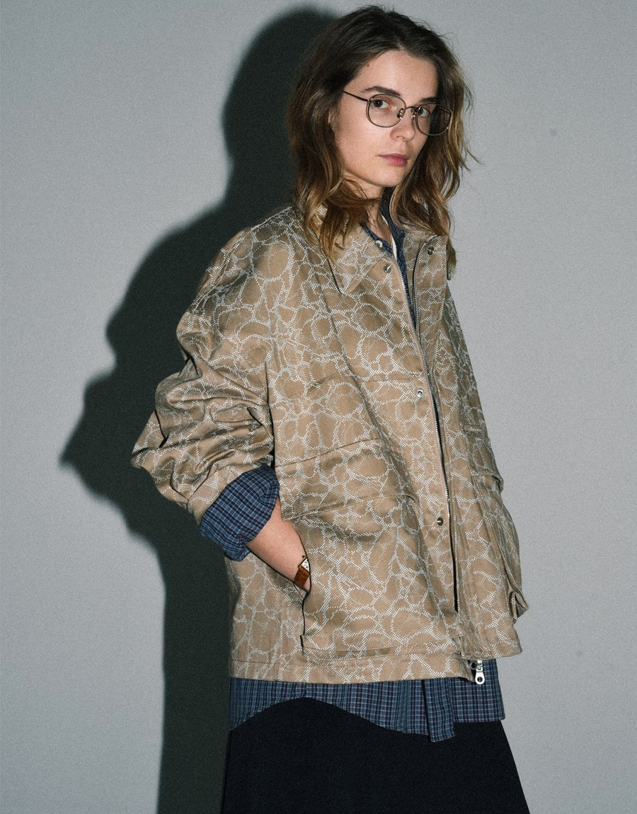 ハンティングジャケットモチーフにしており、襟を立たせるために内側に切り替えがあります。