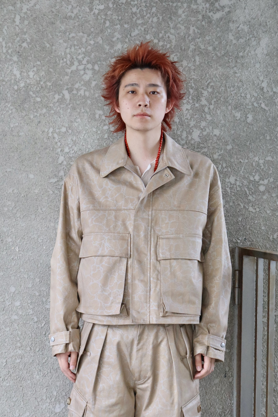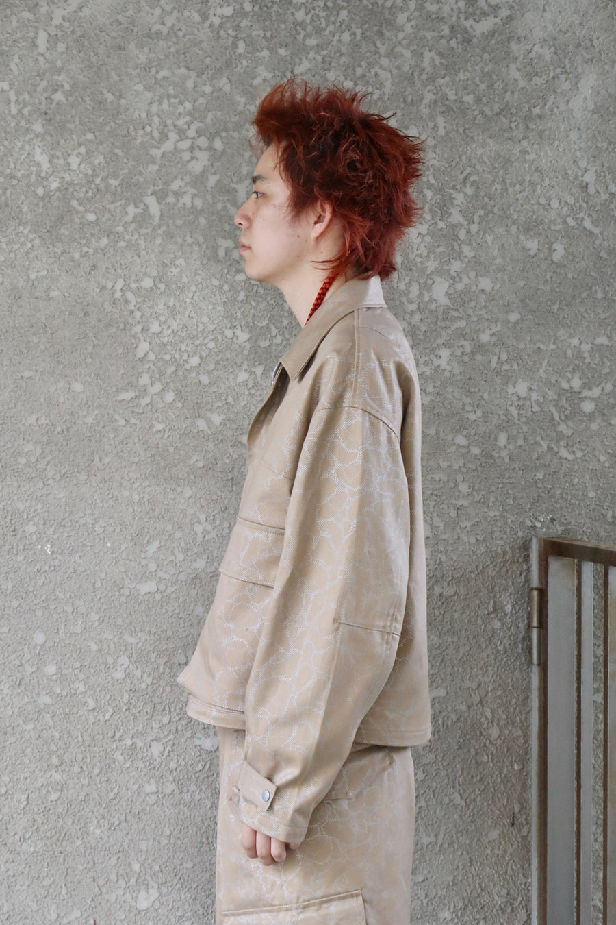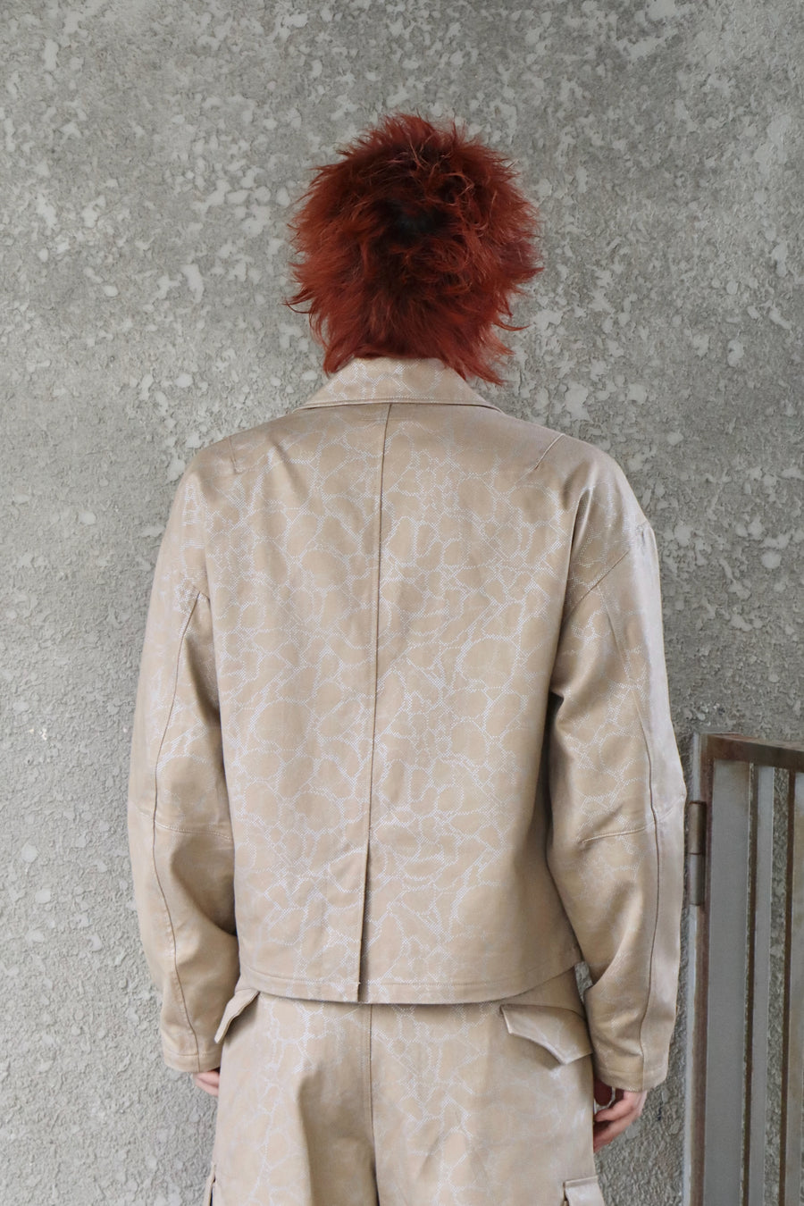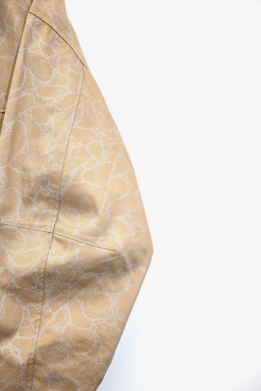 ハンティングジャケットモチーフにしており、襟を立たせるために内側に切り替えがあります。