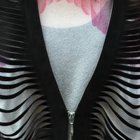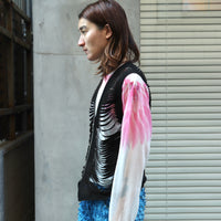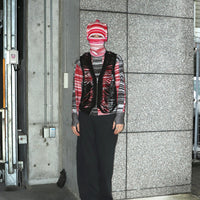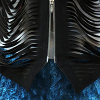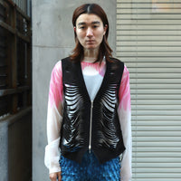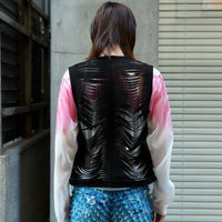 切り込みによって重力に負け、権威を失った新しい顔を持つレザーベスト。