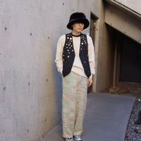 様々な柄のボタンを前面に配したインパクトのある1着。