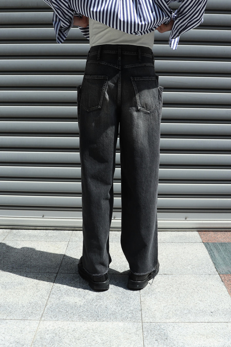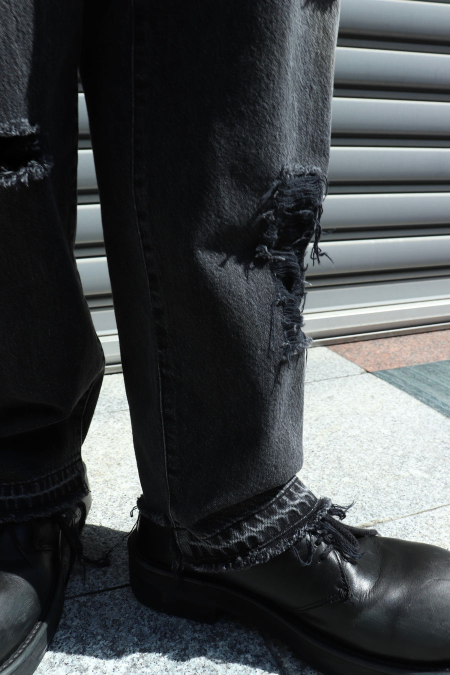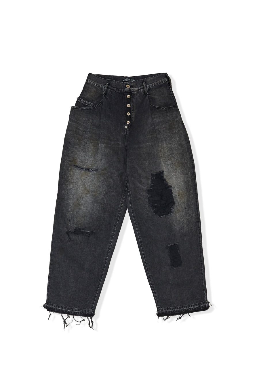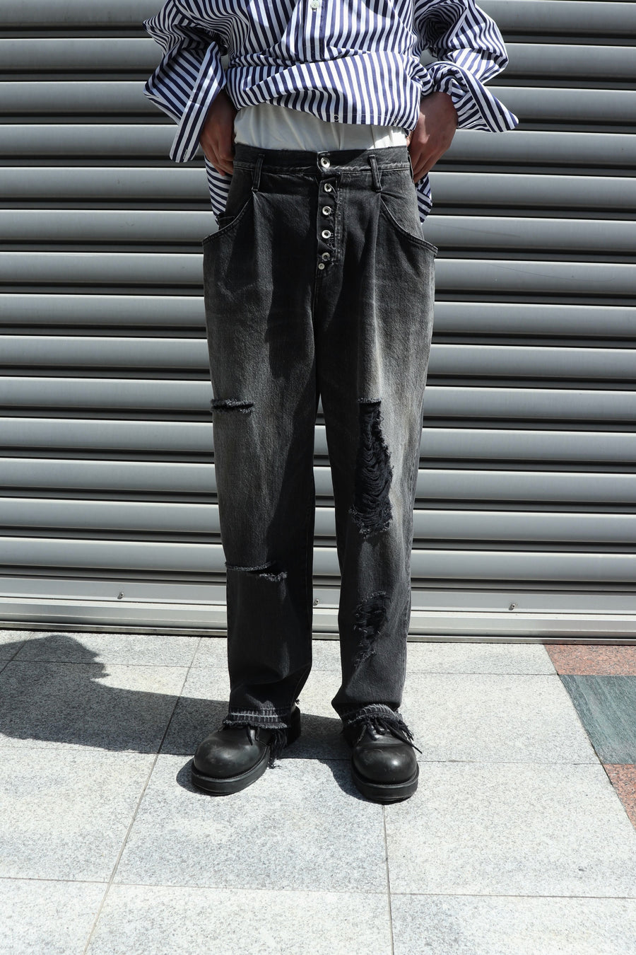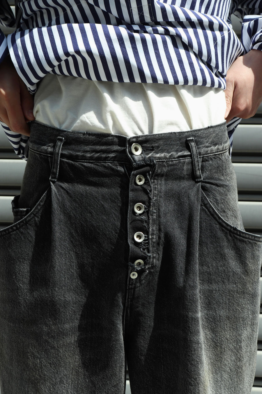 SOSHIOTSUKI DRAPE POCKET TUCKED DENIM DAMAGE(BLACK)