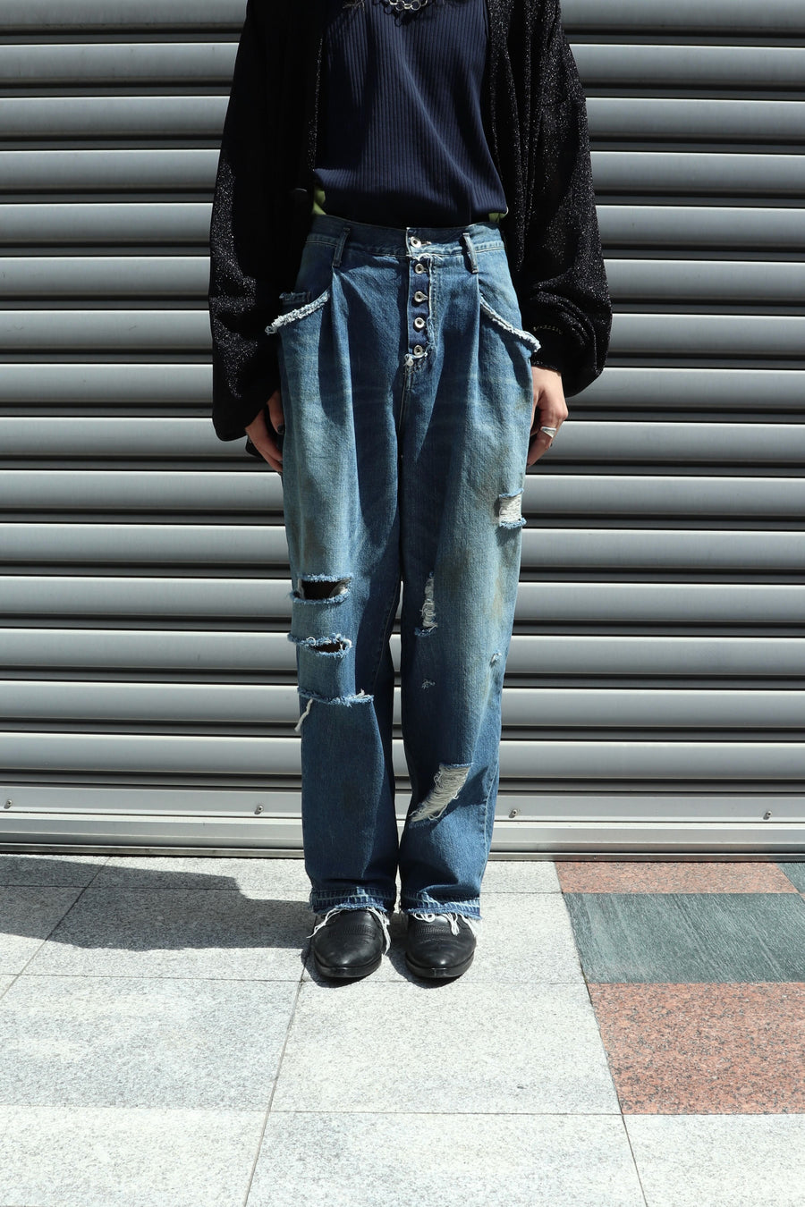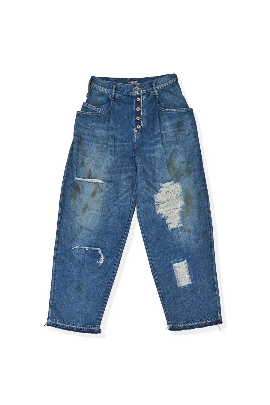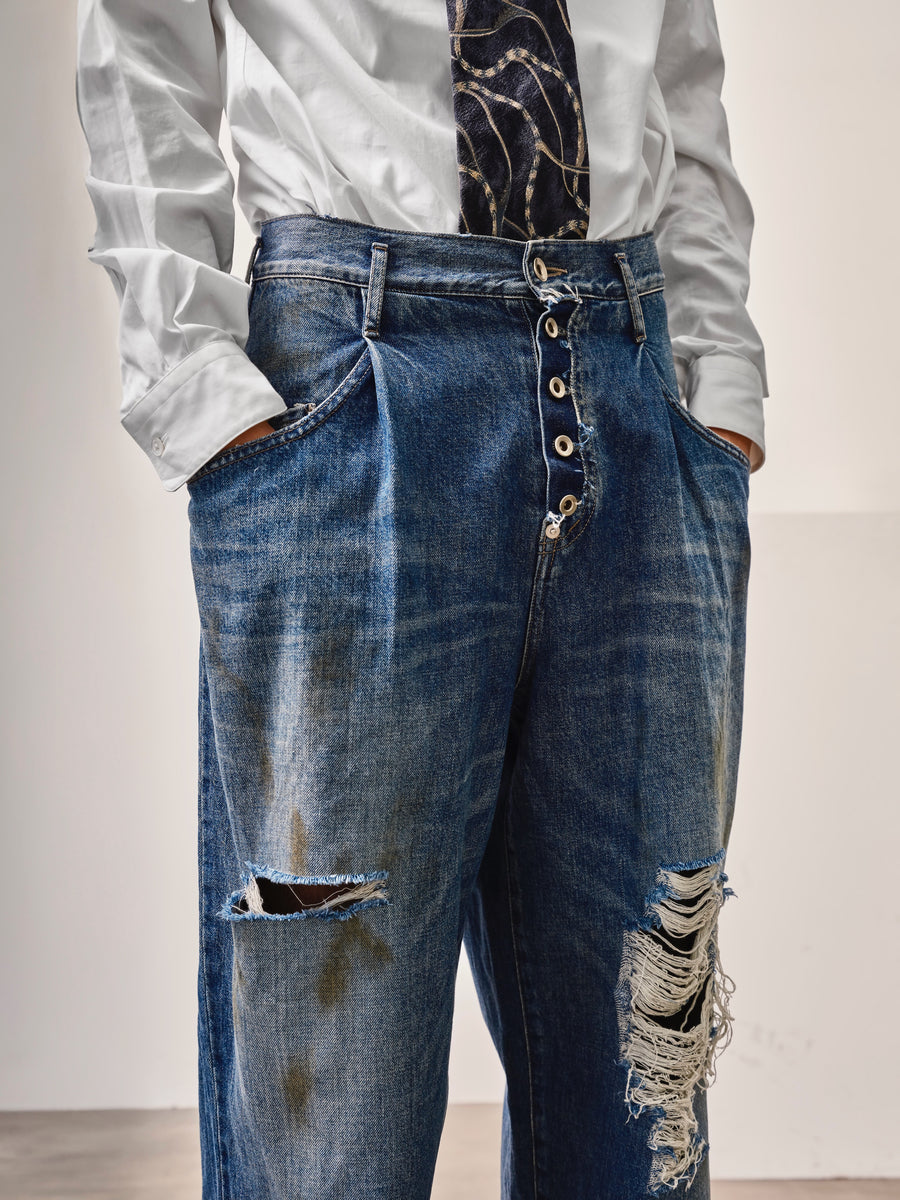 SOSHIOTSUKI DRAPE POCKET TUCKED DENIM DAMAGE(INDIGO)