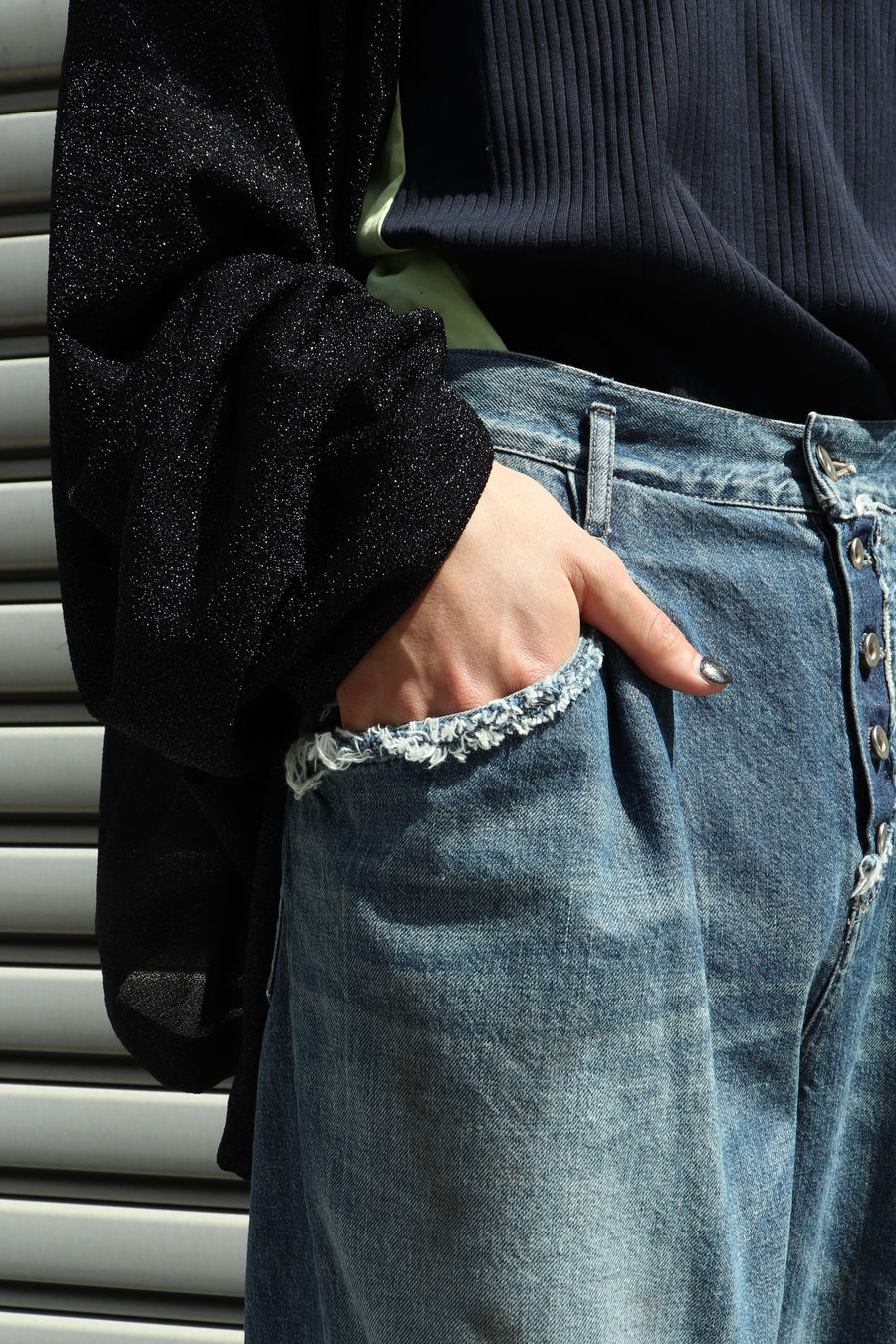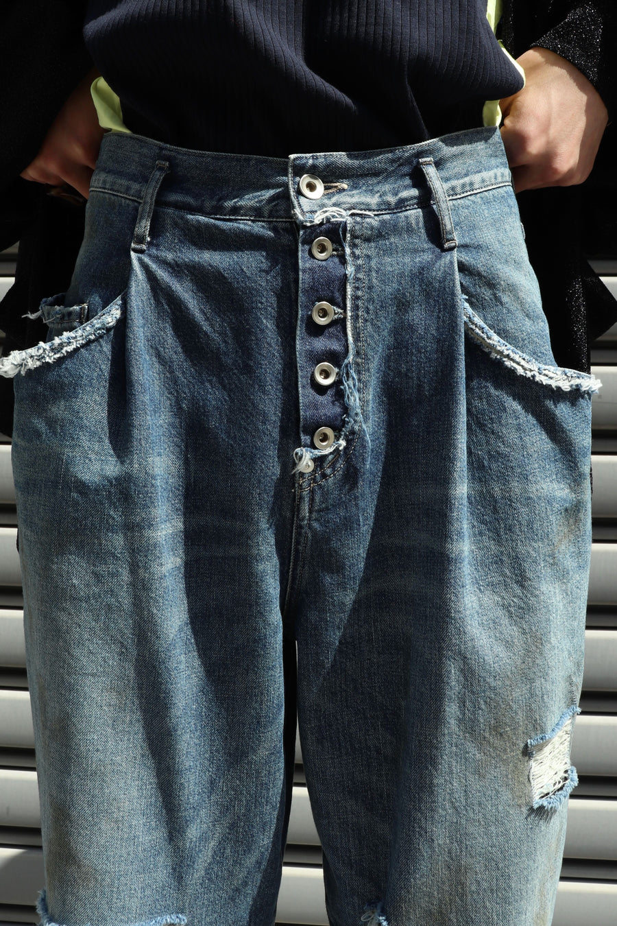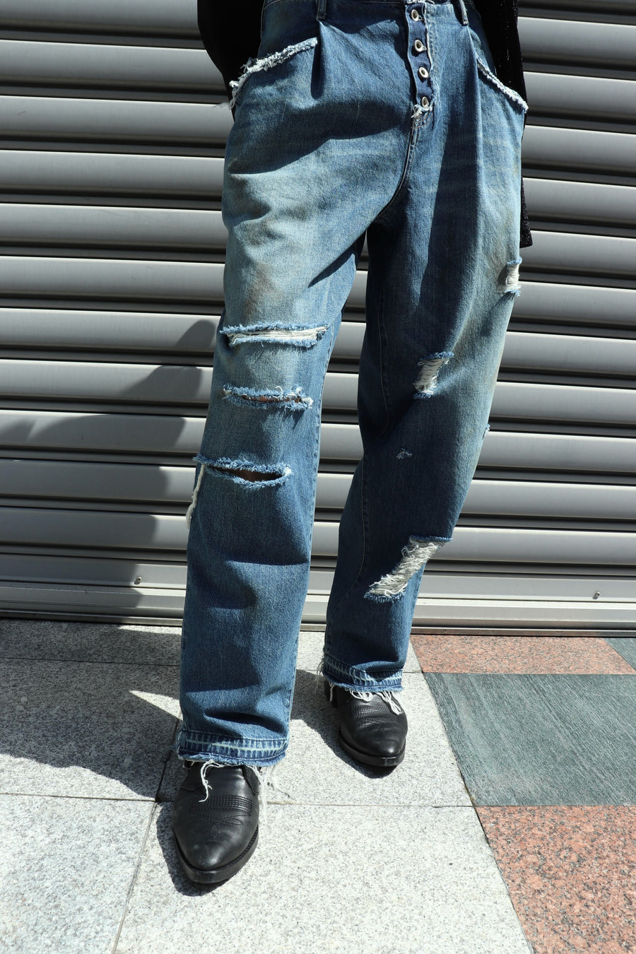 SOSHIOTSUKI DRAPE POCKET TUCKED DENIM DAMAGE(INDIGO)