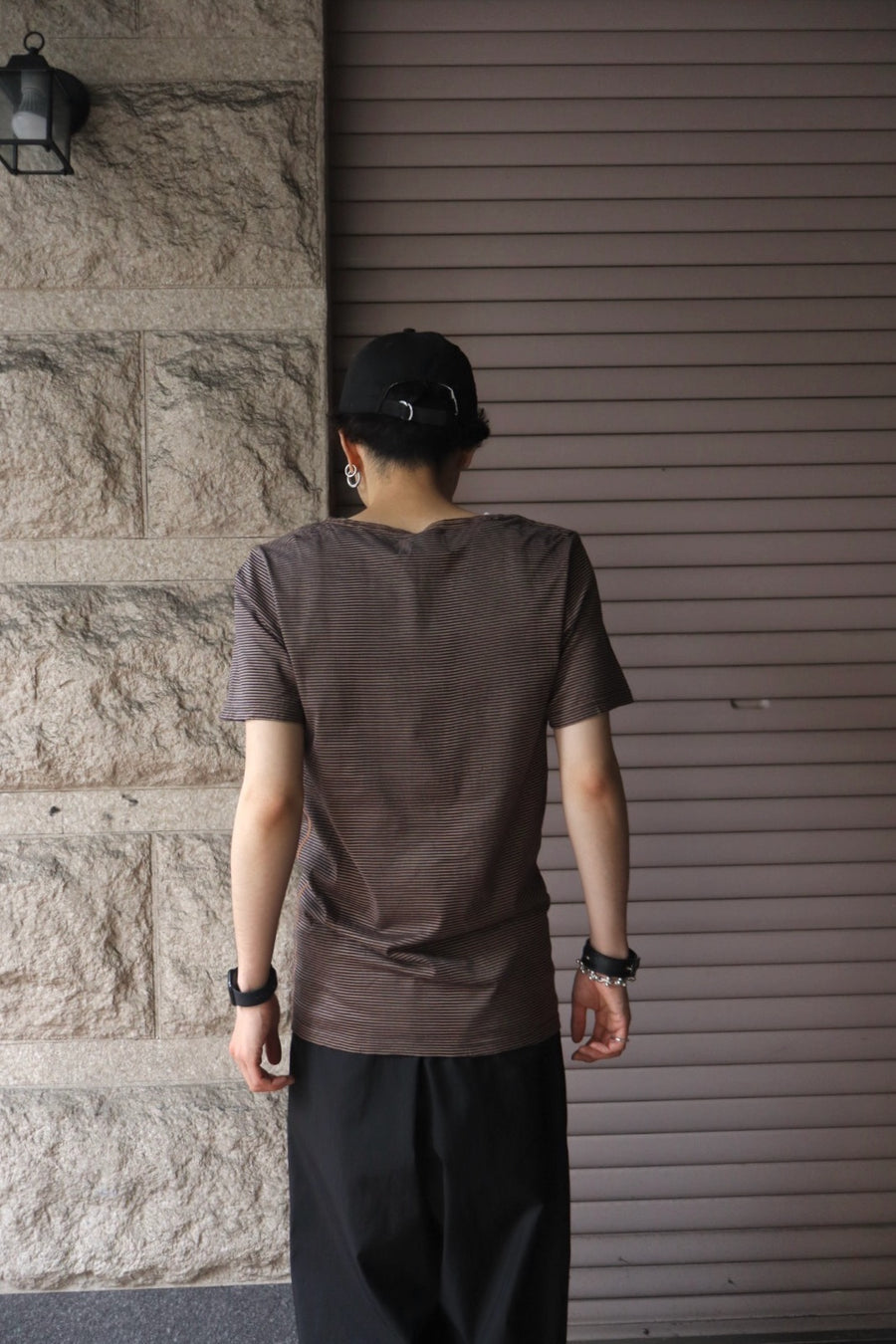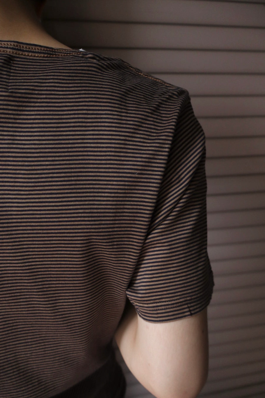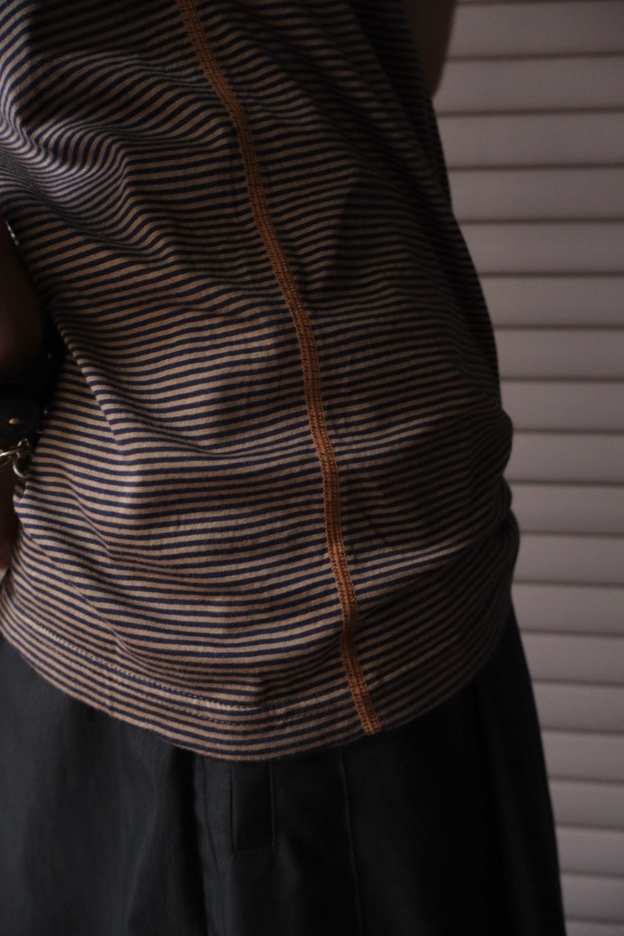 SUGARHILL STRIPE TEE(NAVY × BROWN)