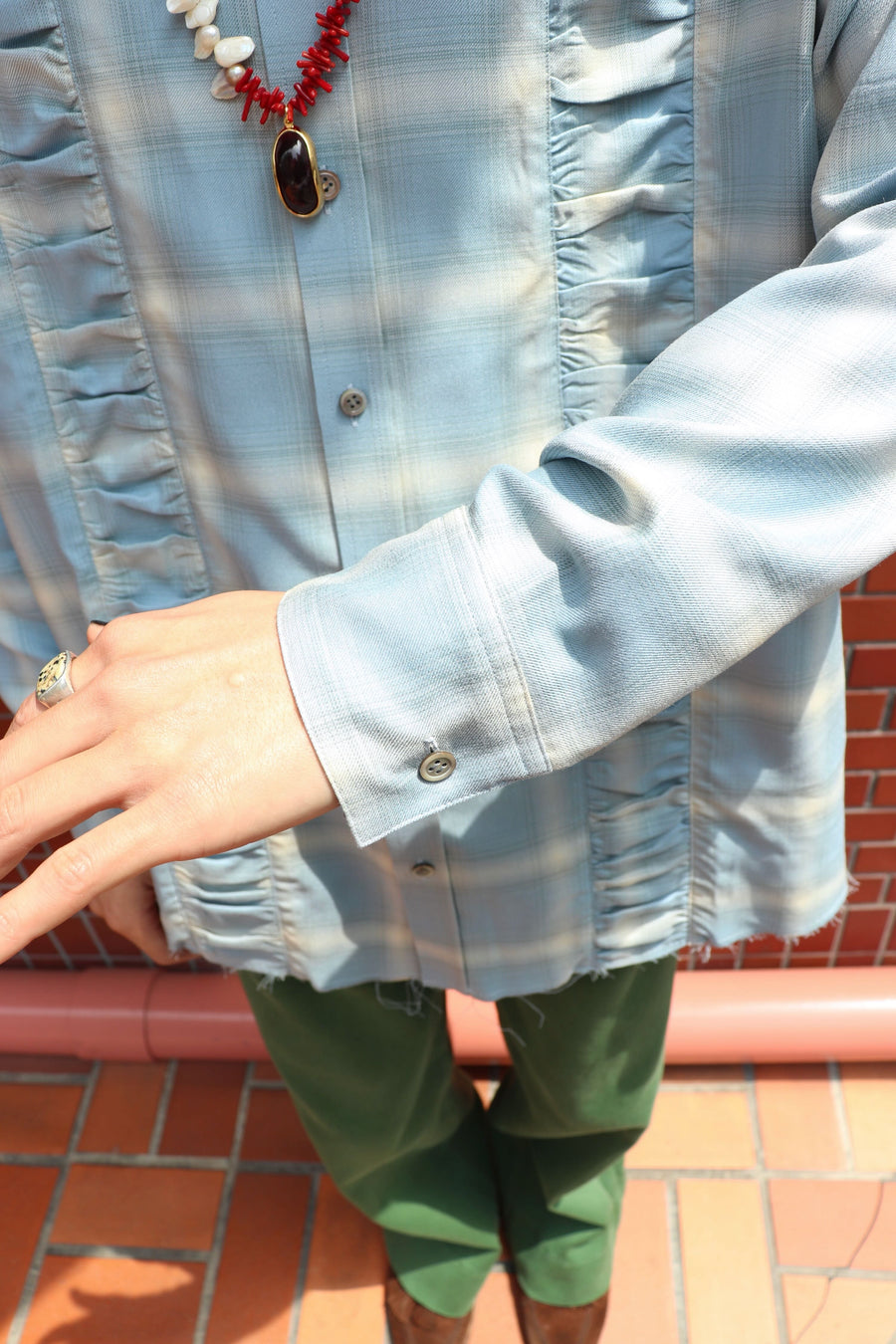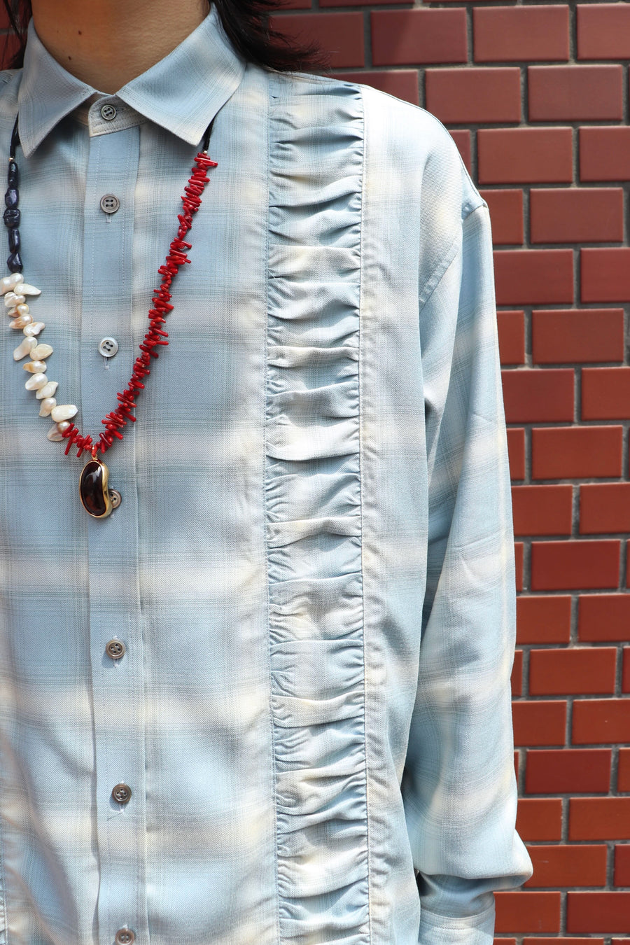 【40%OFF】Taiga Igari Gather Plaid Shirt(SKY BLUE)