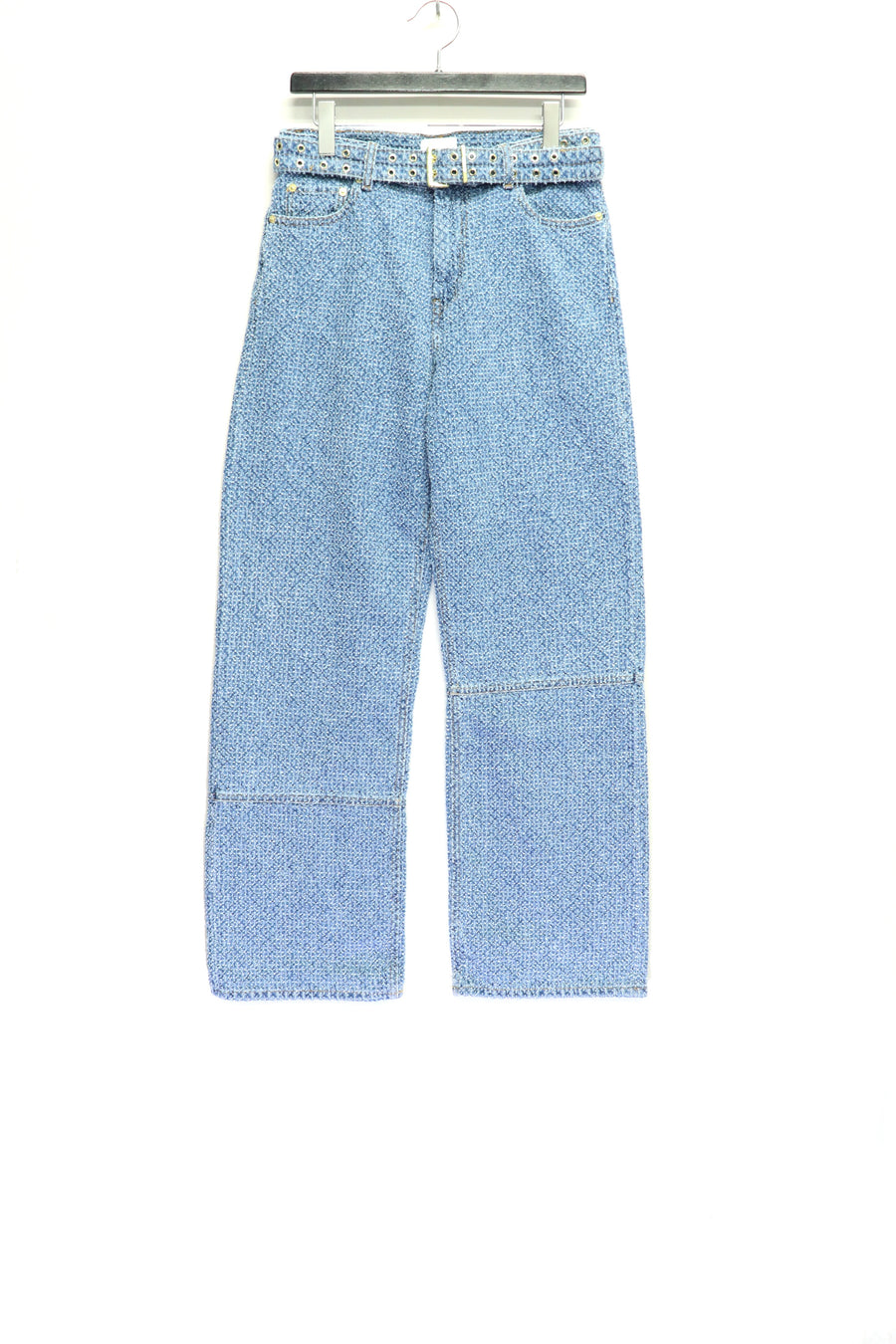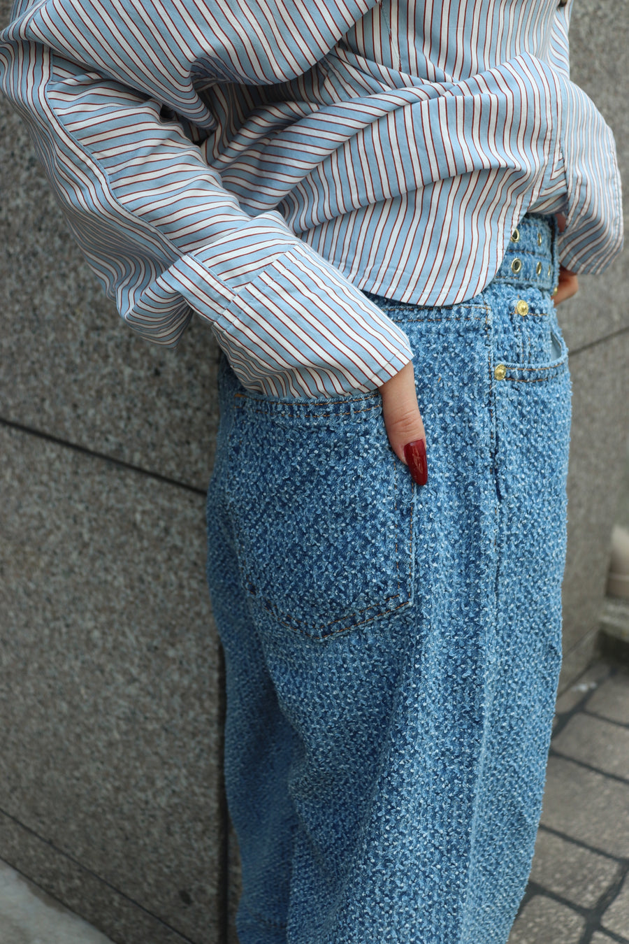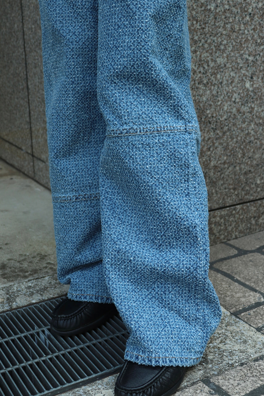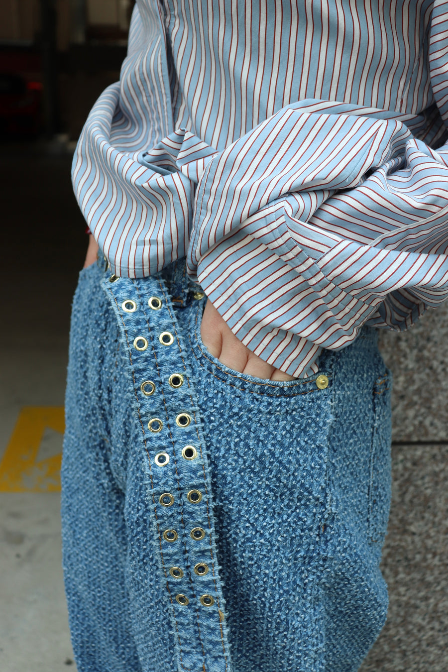 牛仔長褲,具有令人印象深刻的毛絨表面。