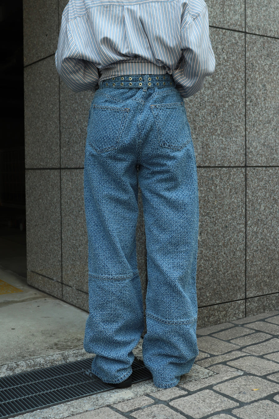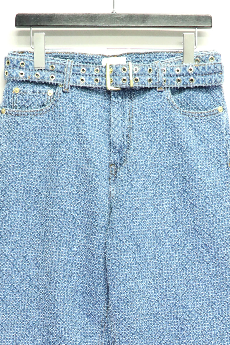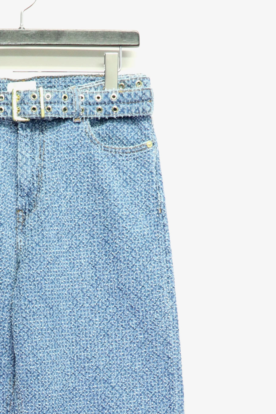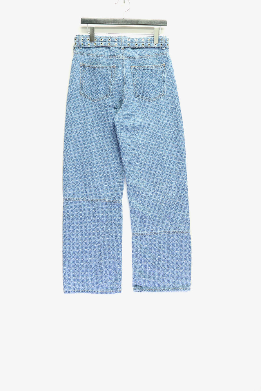 牛仔長褲,具有令人印象深刻的毛絨表面。