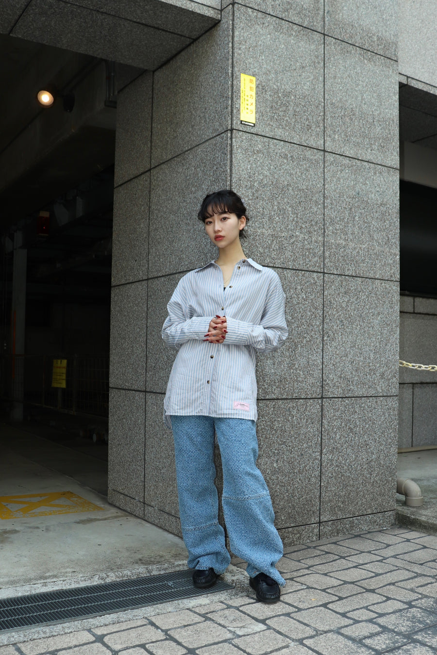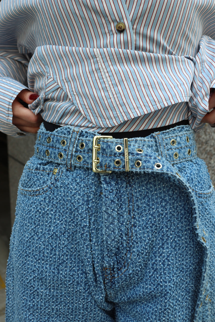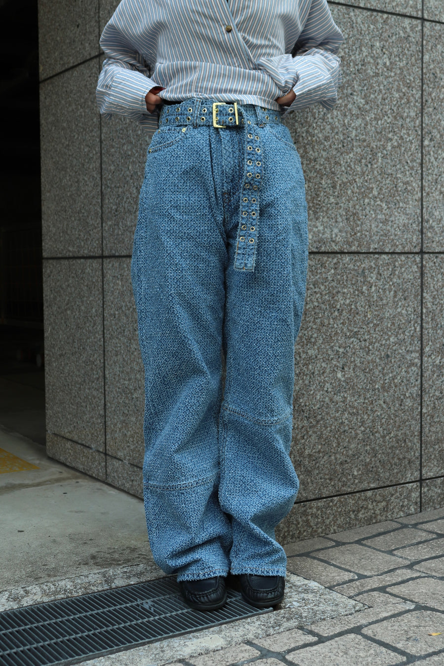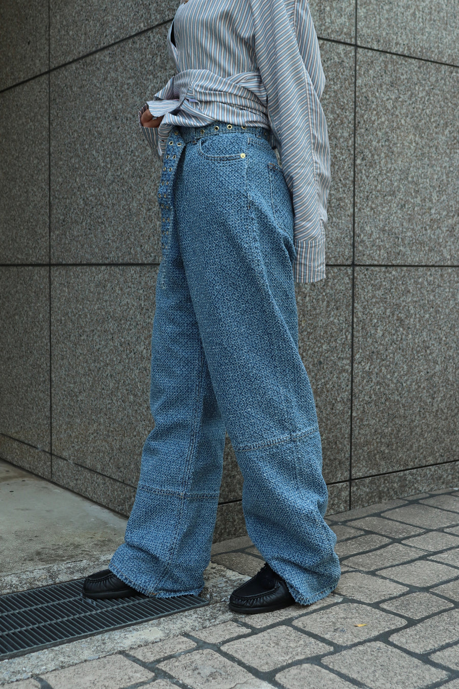 牛仔長褲,具有令人印象深刻的毛絨表面。