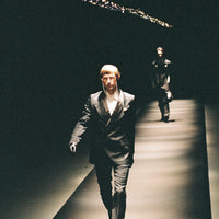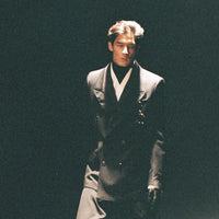 他父親的西裝翻領捲起來,露出吊牌和口袋,看起來像一件雙排扣大衣,而夾克就是這樣的形狀。